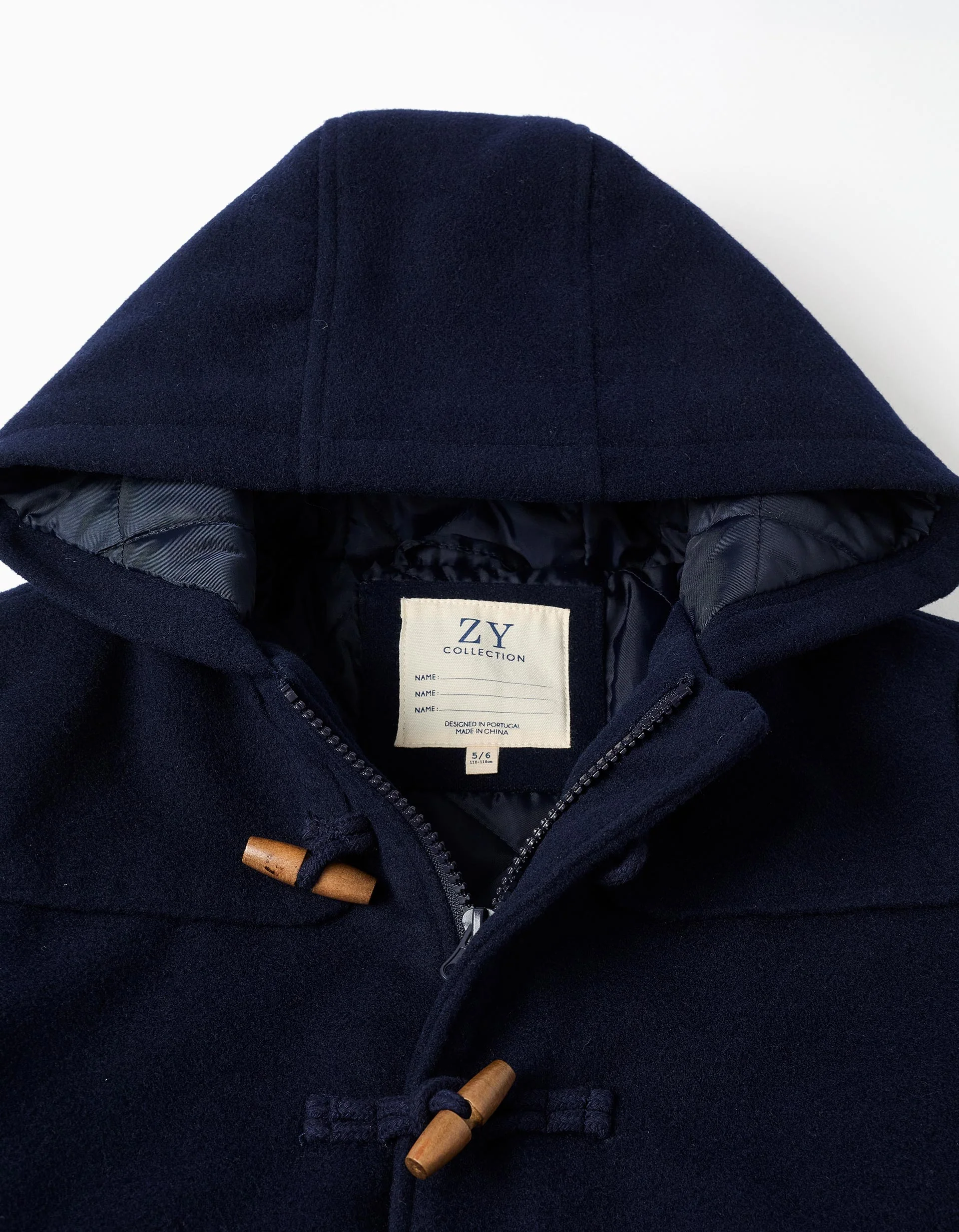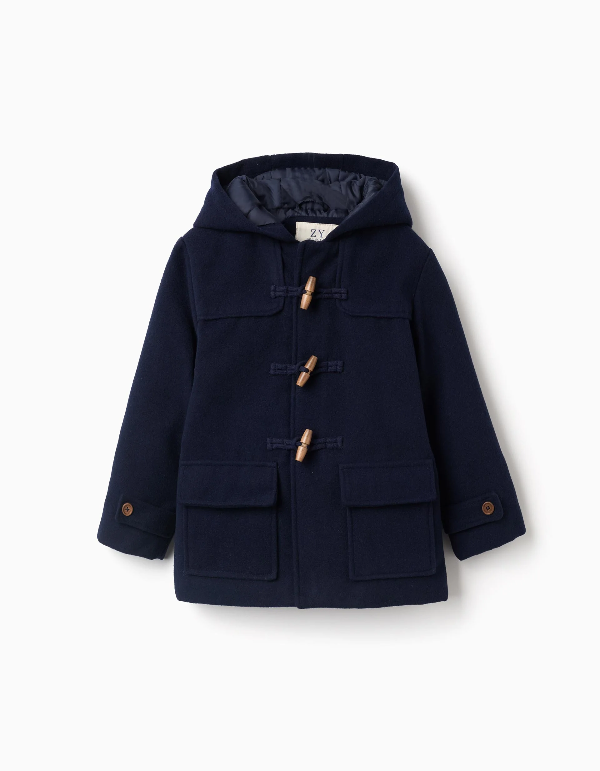 Este abrigo azul oscuro con capucha para niño combina elegancia, abrigo y funcionalidad en una prenda imprescindible para los meses fríos.