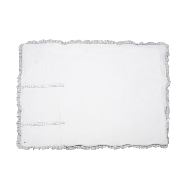 Saco arrullo o saco manta Little Bloom Flor gris de Pasito a pasito. Está fabricado con una suave muselina de flores estampada en el exterior y muselina lisa en el interior de 100% algodón. Ideal para los primeros dias del bebé. Es perfecto para los primeros paseos en el capazo. Se convierte en una manta para la cuna. Practico cierre tipo sobre con lazos y cierre con cremallera en la parte inferior en los pies para que el bebé esté abrigado. Gran calidad y mucho estilo. Todas nuestras fundas están fabricadas conforme a las más exigentes normativas europeas, con materiales de gran calidad, libres de colorantes azoicos, ftalatos y sustancias nocivas para la salud. Tela de fácil limpieza, se recomienda lavar a máquina a 30º. Los productos para bebé de Pasito a Pasito cuentan con un diseño muy diferente a todas las demás.