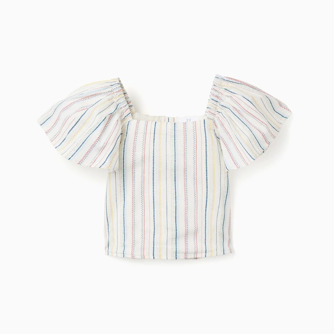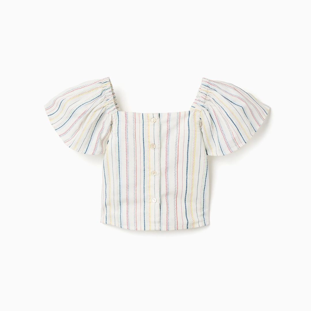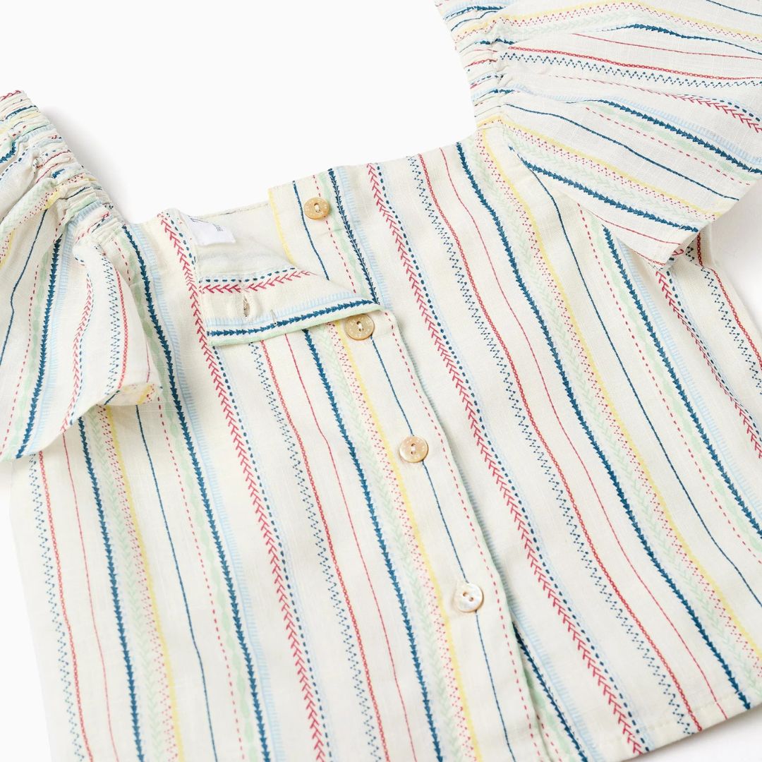 Blusa Corta Algodón Rayas Étnicas Multicolor Zippy