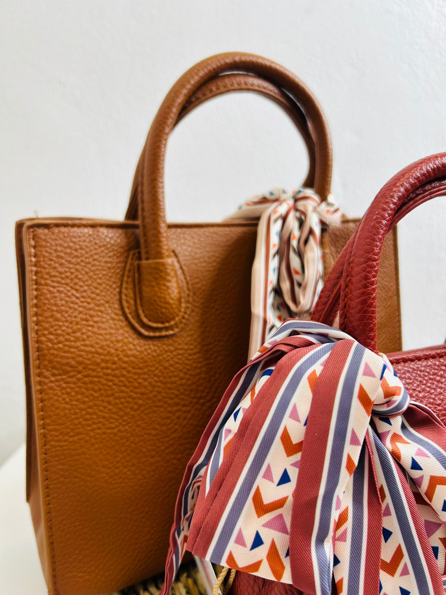 Incluye un pañuelo decorativo multicolor atado al asa, que añade un toque sofisticado y original.