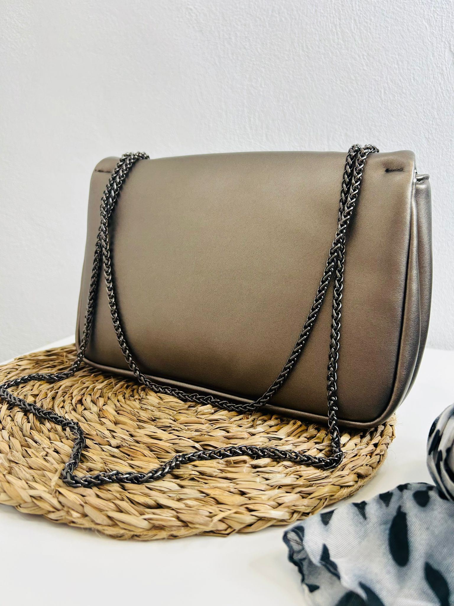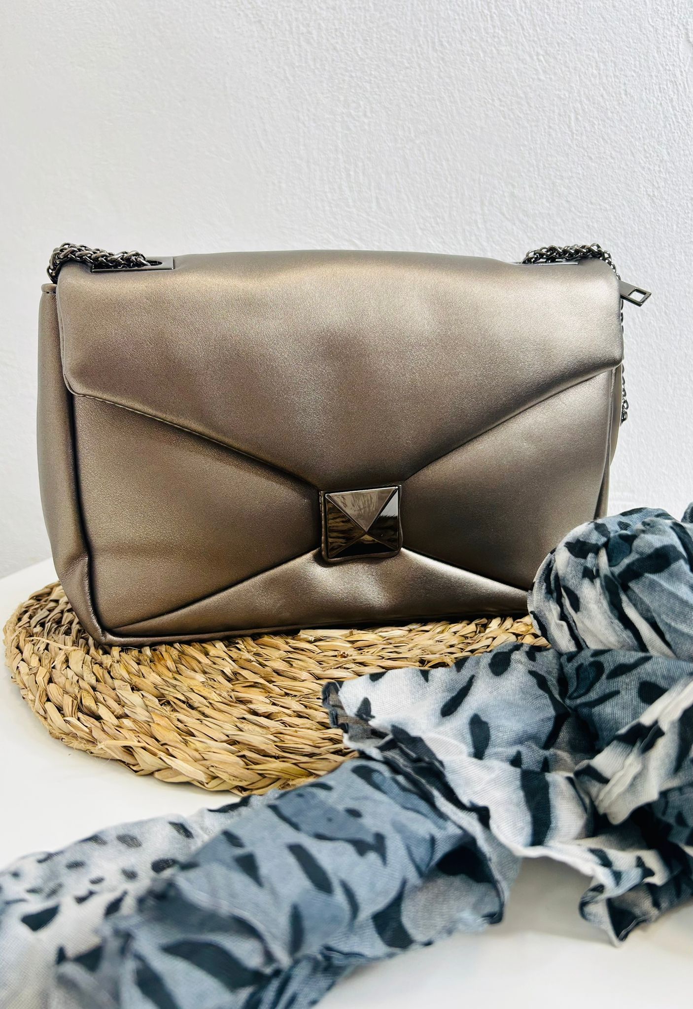 Bolso de mujer con un elegante acabado metalizado que aporta un toque sofisticado y moderno a cualquier look.