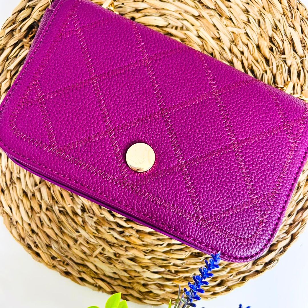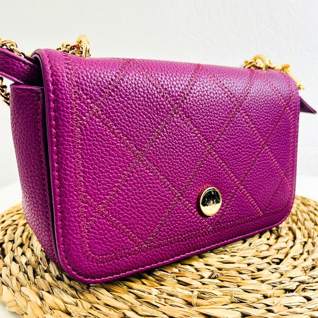 Bolso para mujer  en color buganvilla con diseño acolchado en patrón de rombos y acabado texturizado que aporta un estilo elegante y moderno.