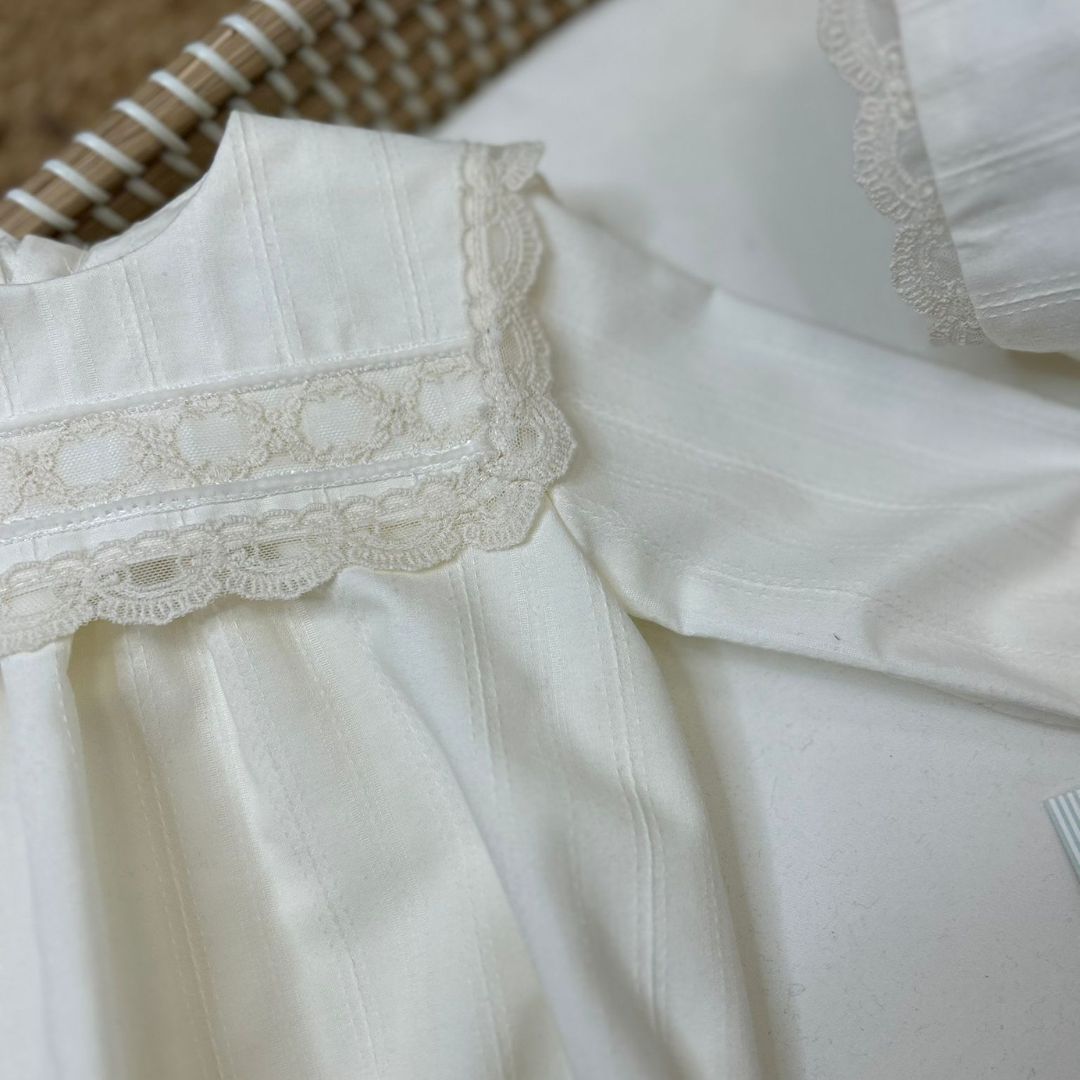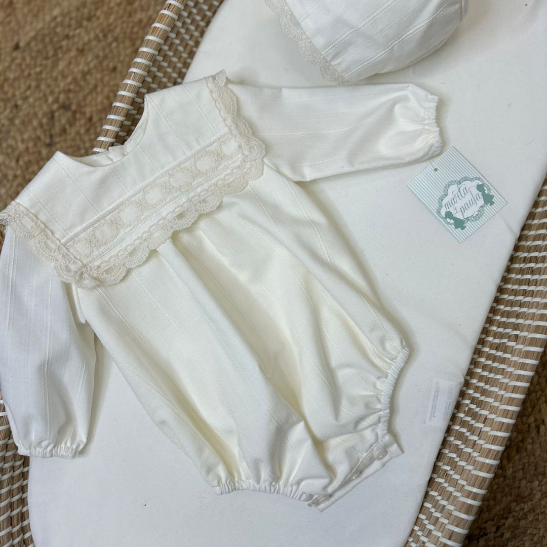 Dulzura, estilo y tradición en una sola prenda. Este encantador bombacho de la colección Familia Audrey de Marta y Paula destaca por su diseño elegante y atemporal, confeccionado con tejidos suaves y de alta calidad para garantizar la máxima comodidad del bebé.