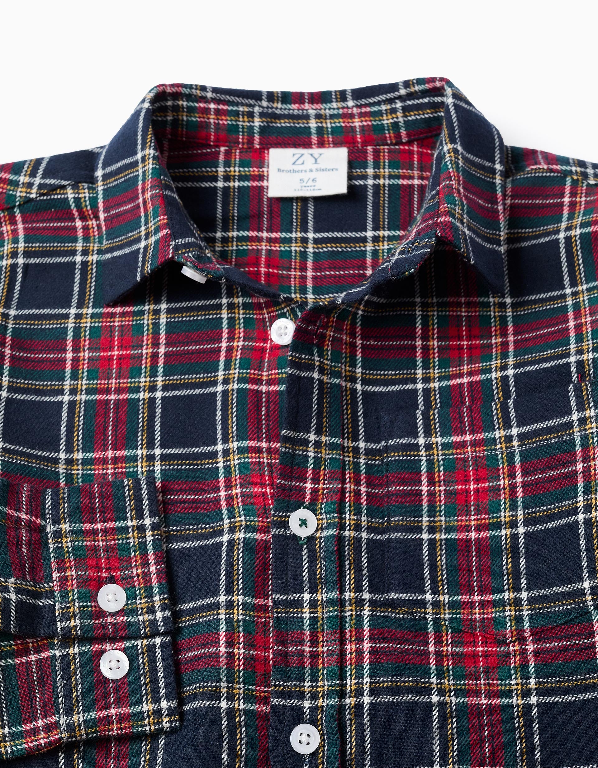 La camisa de franela para niño de la Colección Brothers & Sisters combina comodidad, estilo y autonomía.