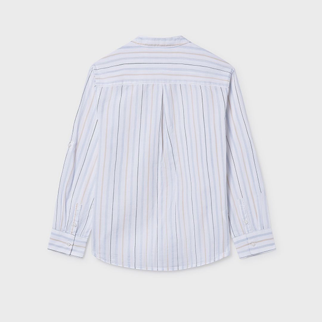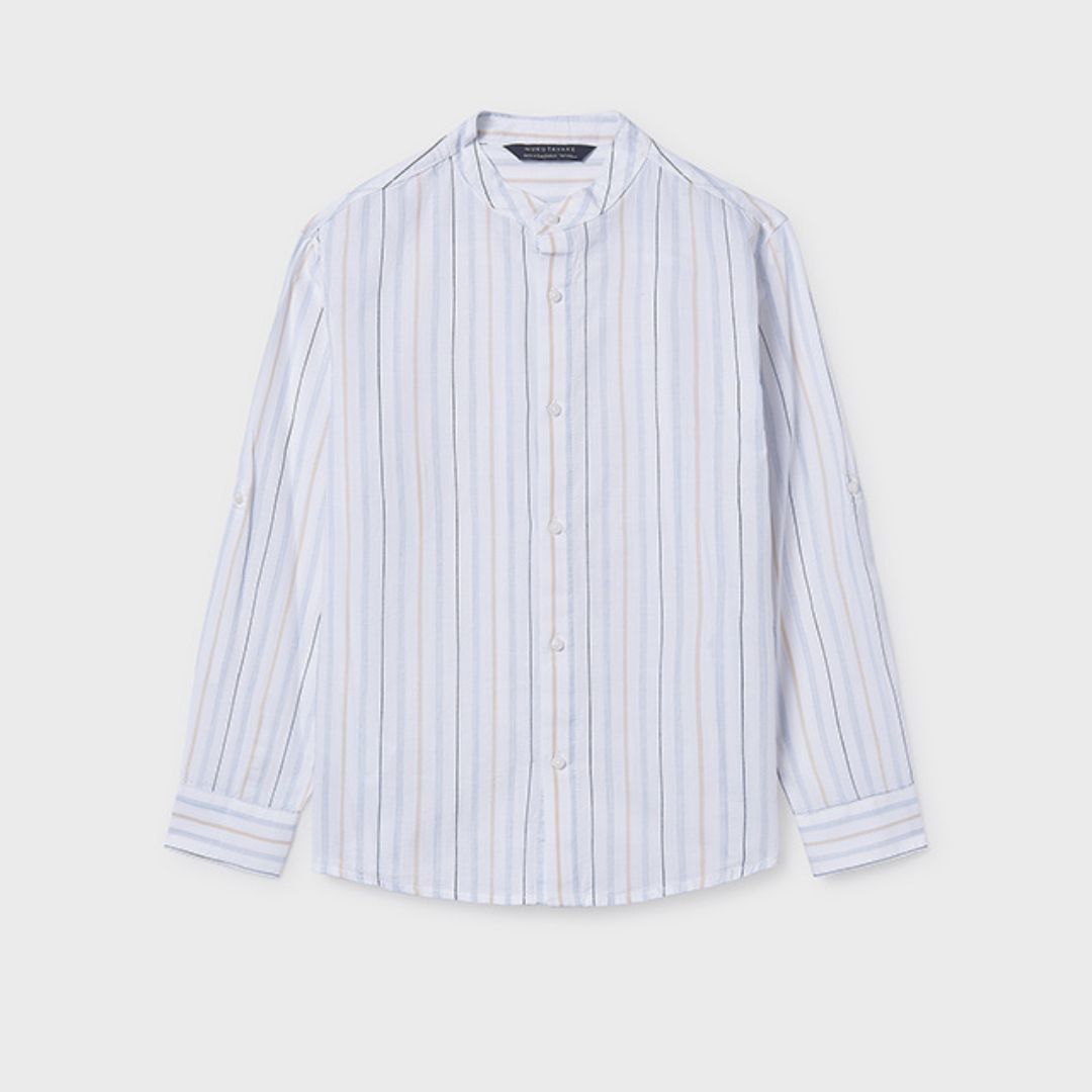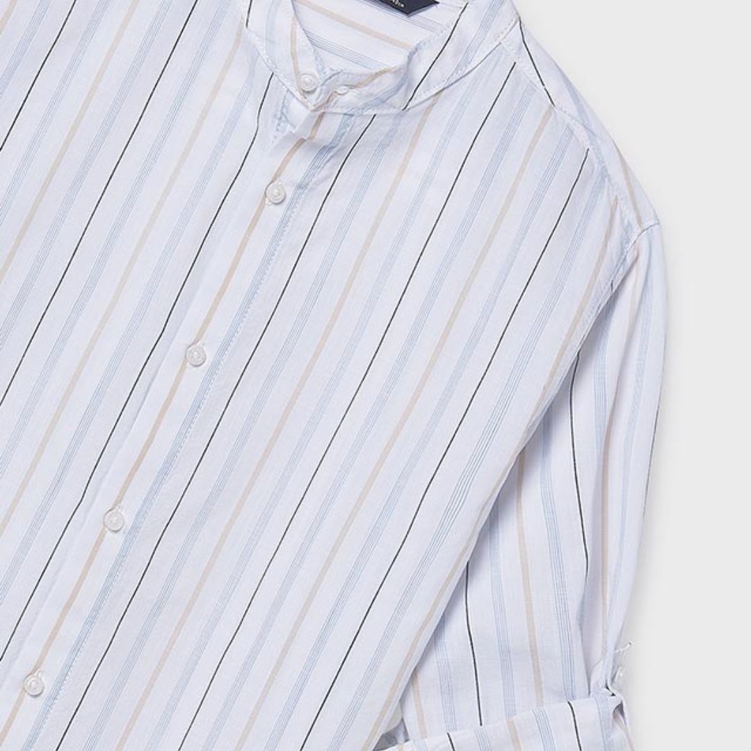Aporta un toque de distinción al armario de los más jóvenes con esta camisa de manga larga de Mayoral. Destaca por su elegante cuello mao, una alternativa moderna y fresca al cuello tradicional que permite lucir un estilo impecable sin perder la comodidad.