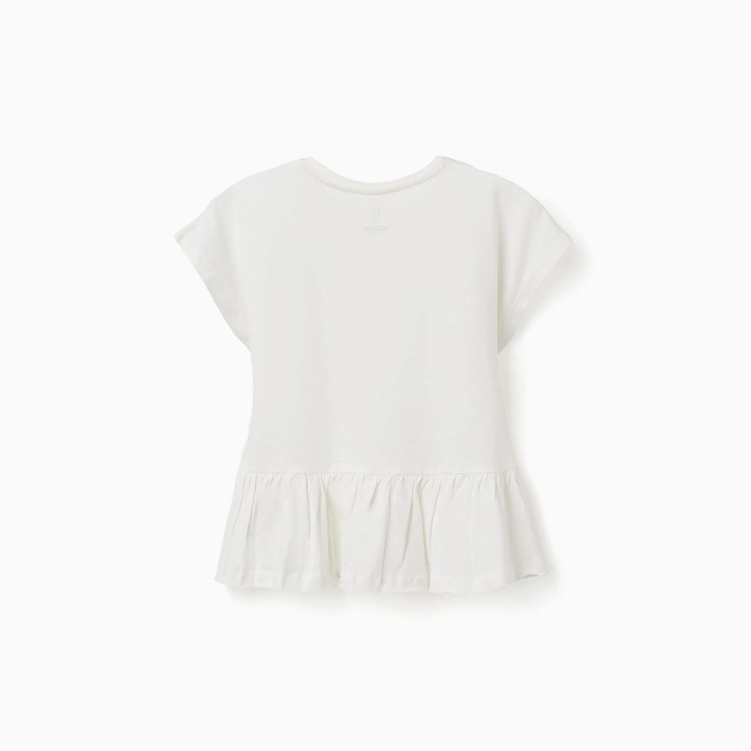 Camiseta Algodón Dobladillo Volantes Blanco Zippy