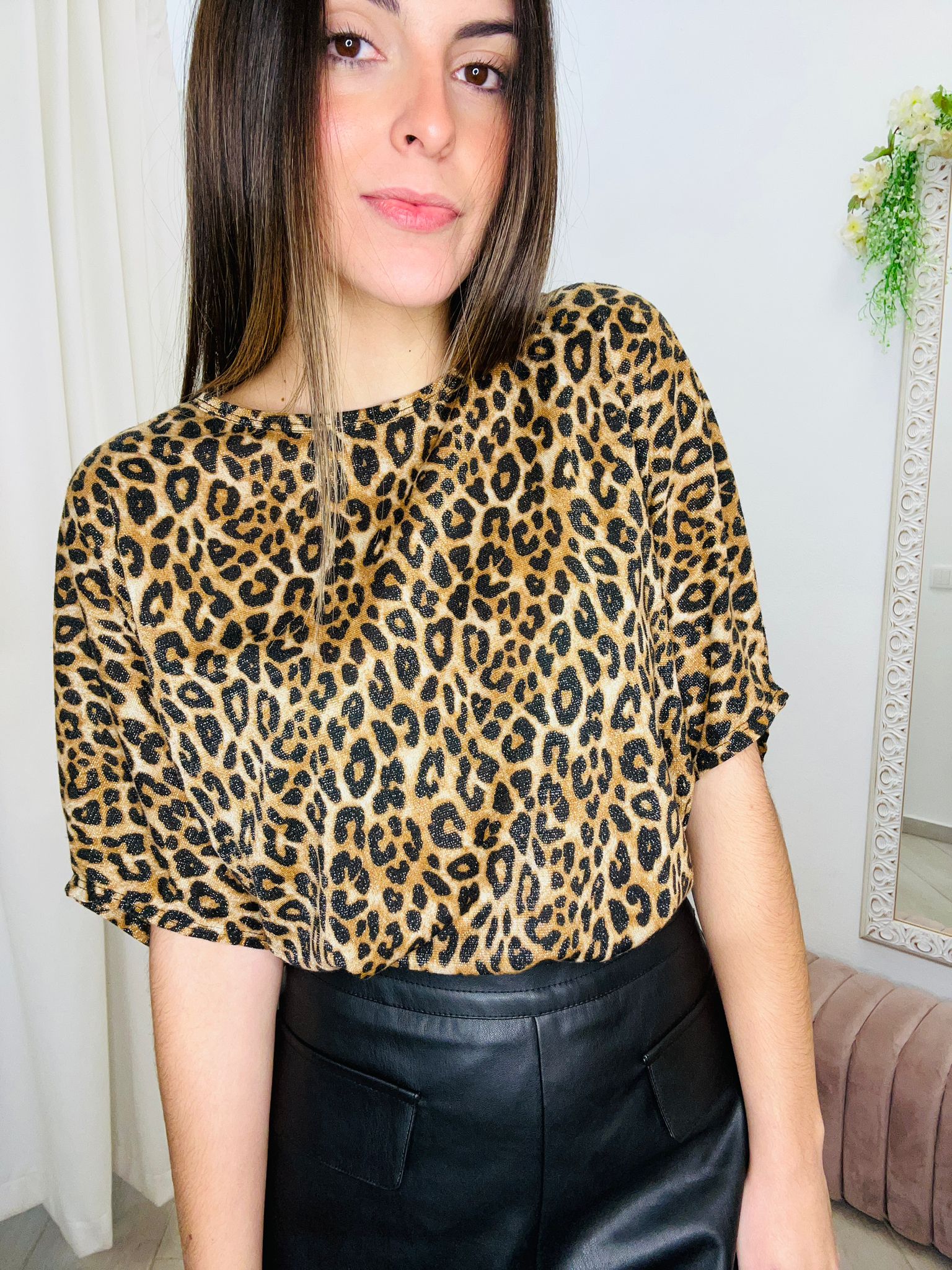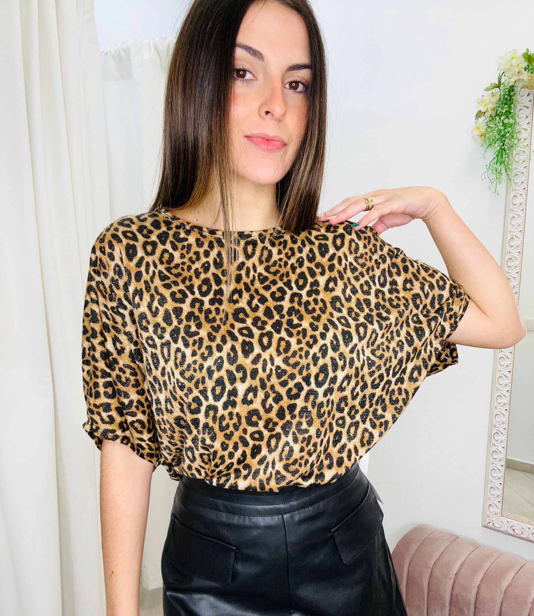 Dale un toque salvaje y moderno a tu estilo con nuestra camiseta animal print de leopardo, diseñada en un tejido fluido que aporta comodidad y movimiento.