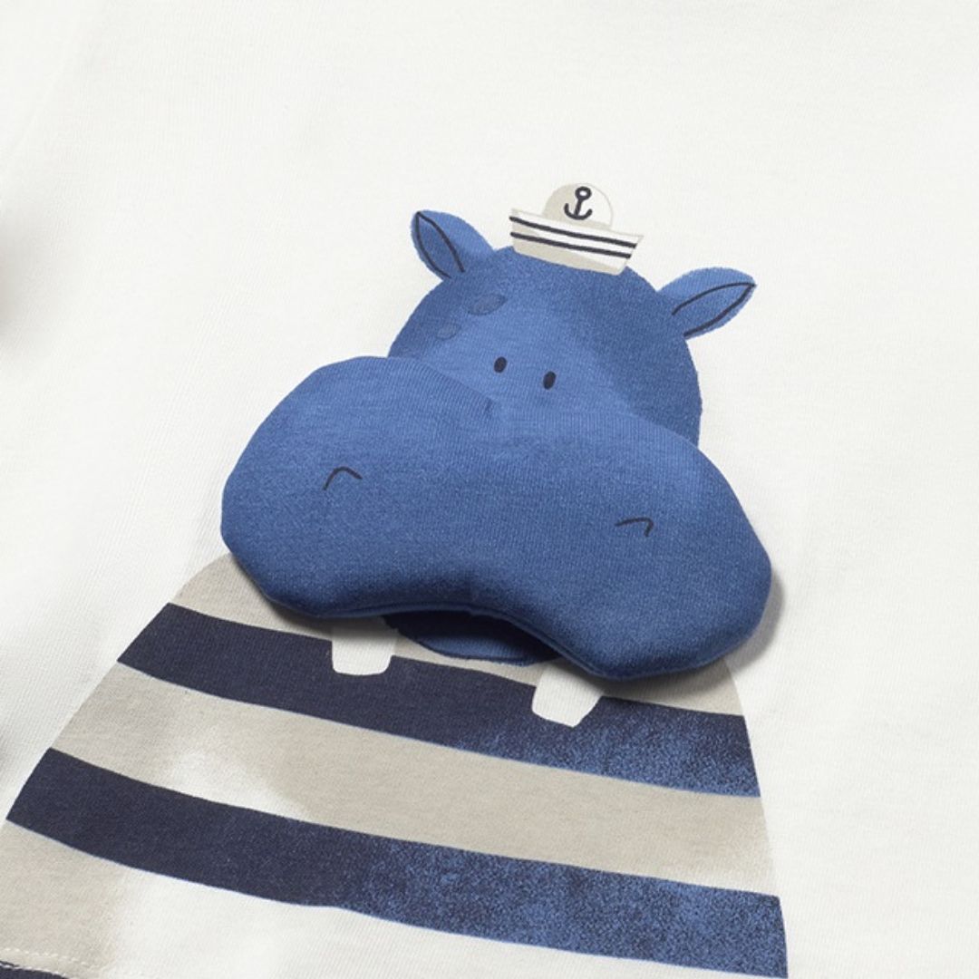 Motivo Central: Presenta un adorable aplique de hipopótamo en relieve con un simpático gorro de marinero.