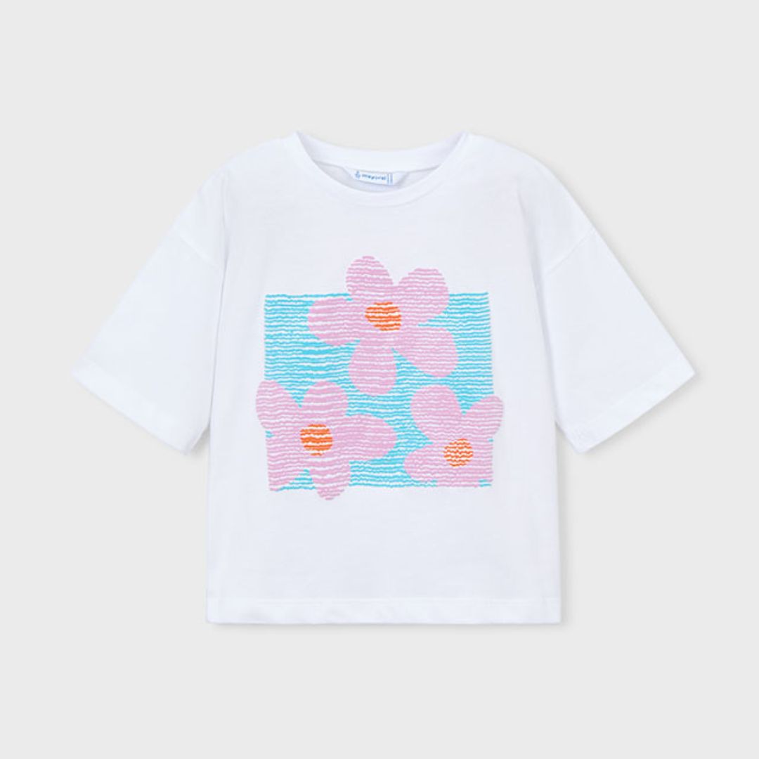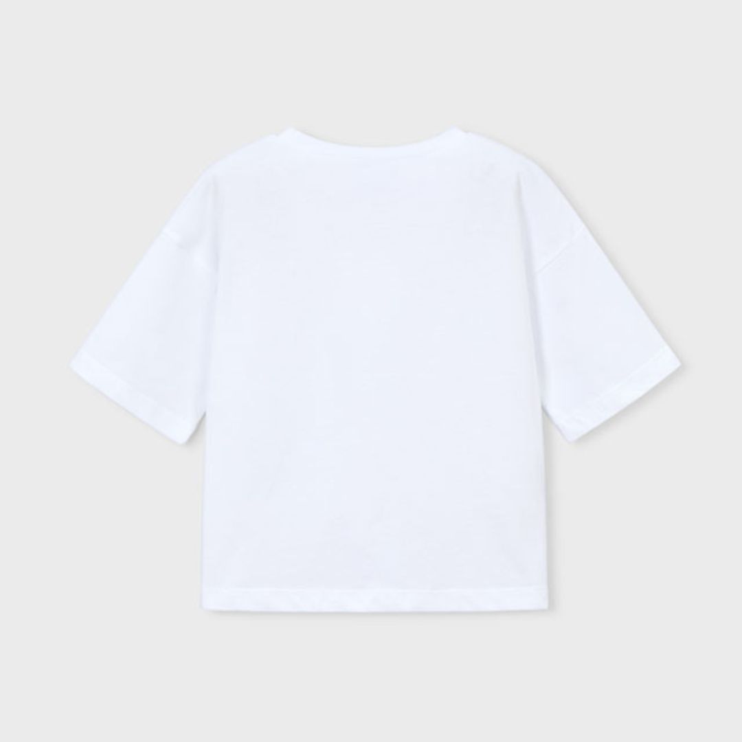 Dale un aire fresco y contemporáneo al look de tu hija con esta camiseta de Mayoral. Con un diseño de corte oversize y hombros caídos, esta prenda combina a la perfección la comodidad de una prenda básica con las últimas tendencias en moda infantil.