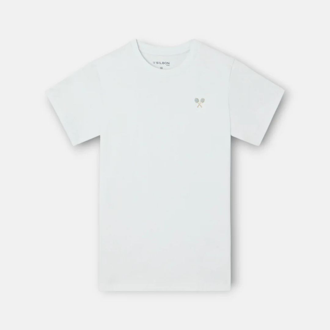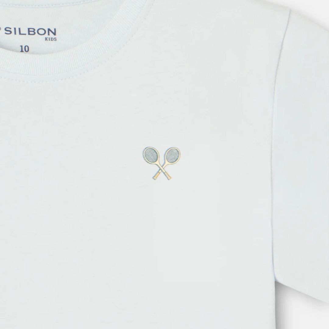 Inspirada en la estética clásica de los clubes de tenis, esta camiseta de la colección Kids de Silbon es la mezcla perfecta de herencia y modernidad. En un tono azul claro muy suave, casi blanco, es la prenda ideal para los pequeños que buscan un estilo sport-chic impecable.