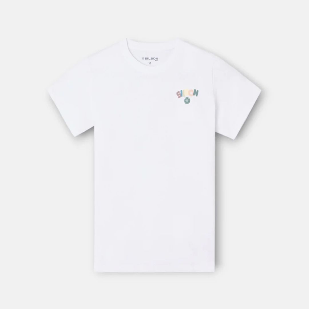 Un básico imprescindible con el sello inconfundible de Silbon. Esta camiseta para niño combina la pureza del color blanco con un diseño gráfico lleno de energía, ideal para crear looks veraniegos, limpios y con mucha personalidad.