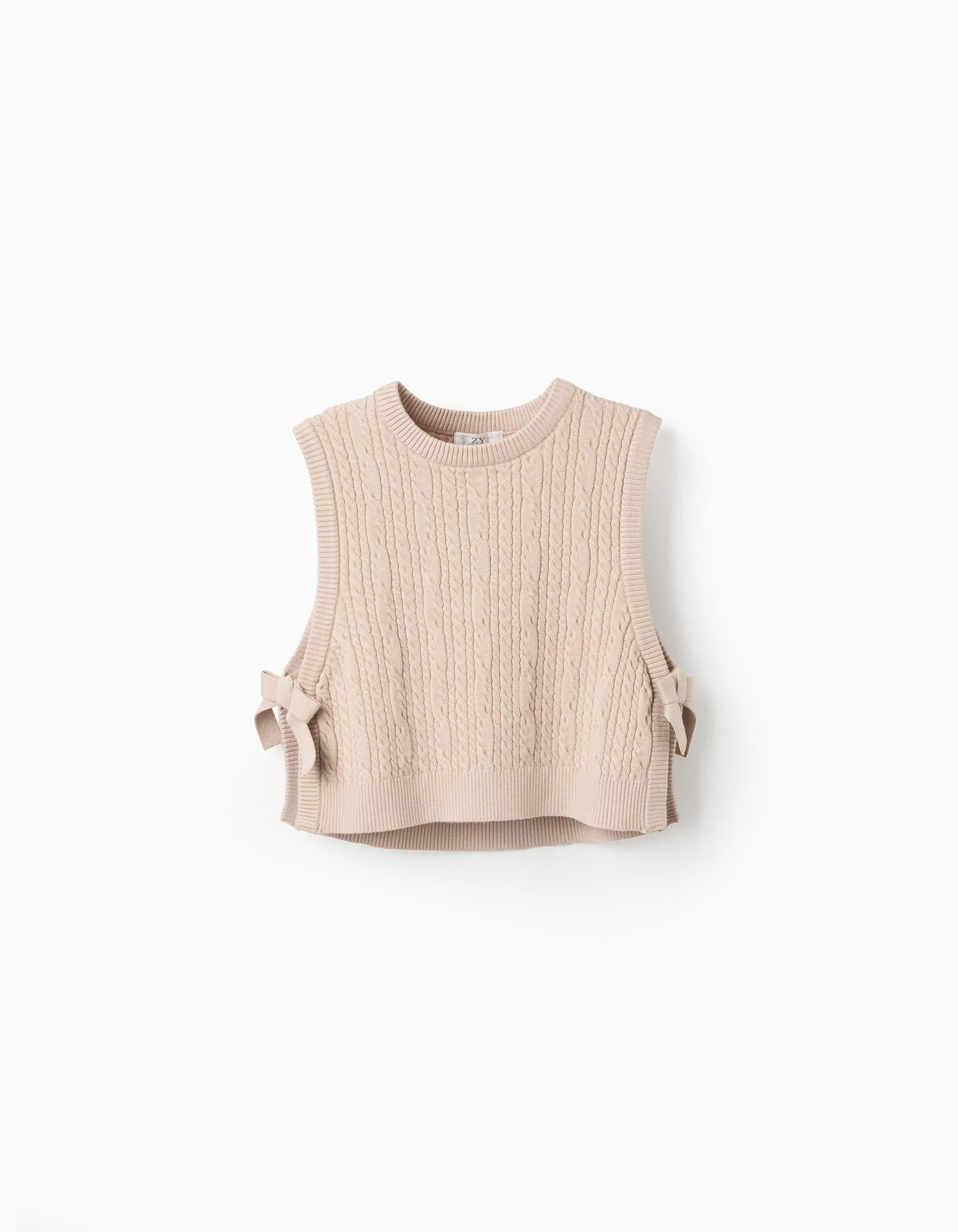 Este chaleco de punto trenzado beige para niña es una prenda clásica y encantadora que aporta un toque de elegancia a cualquier look.
