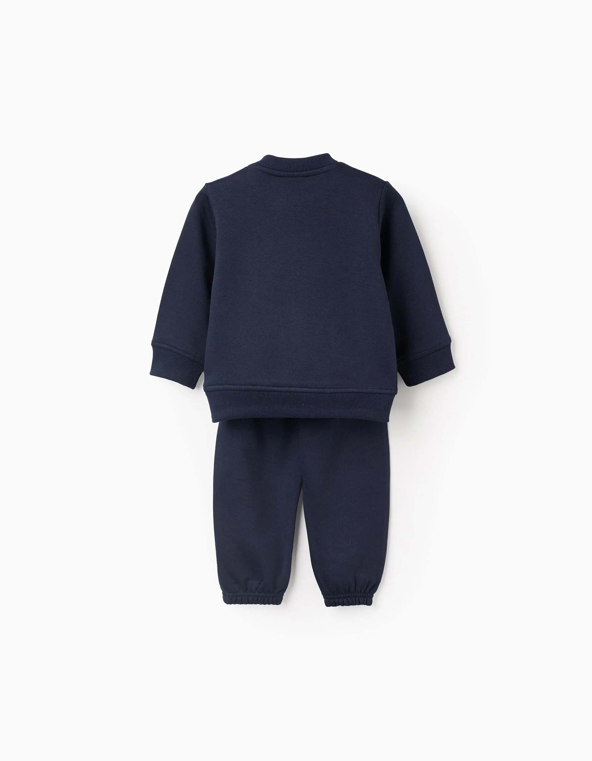 Este chándal azul oscuro para bebé niño combina comodidad, calidez y practicidad en una sola prenda. Confeccionado en tejido suave con interior perchado, proporciona un excelente confort térmico, ideal para los días más frescos.