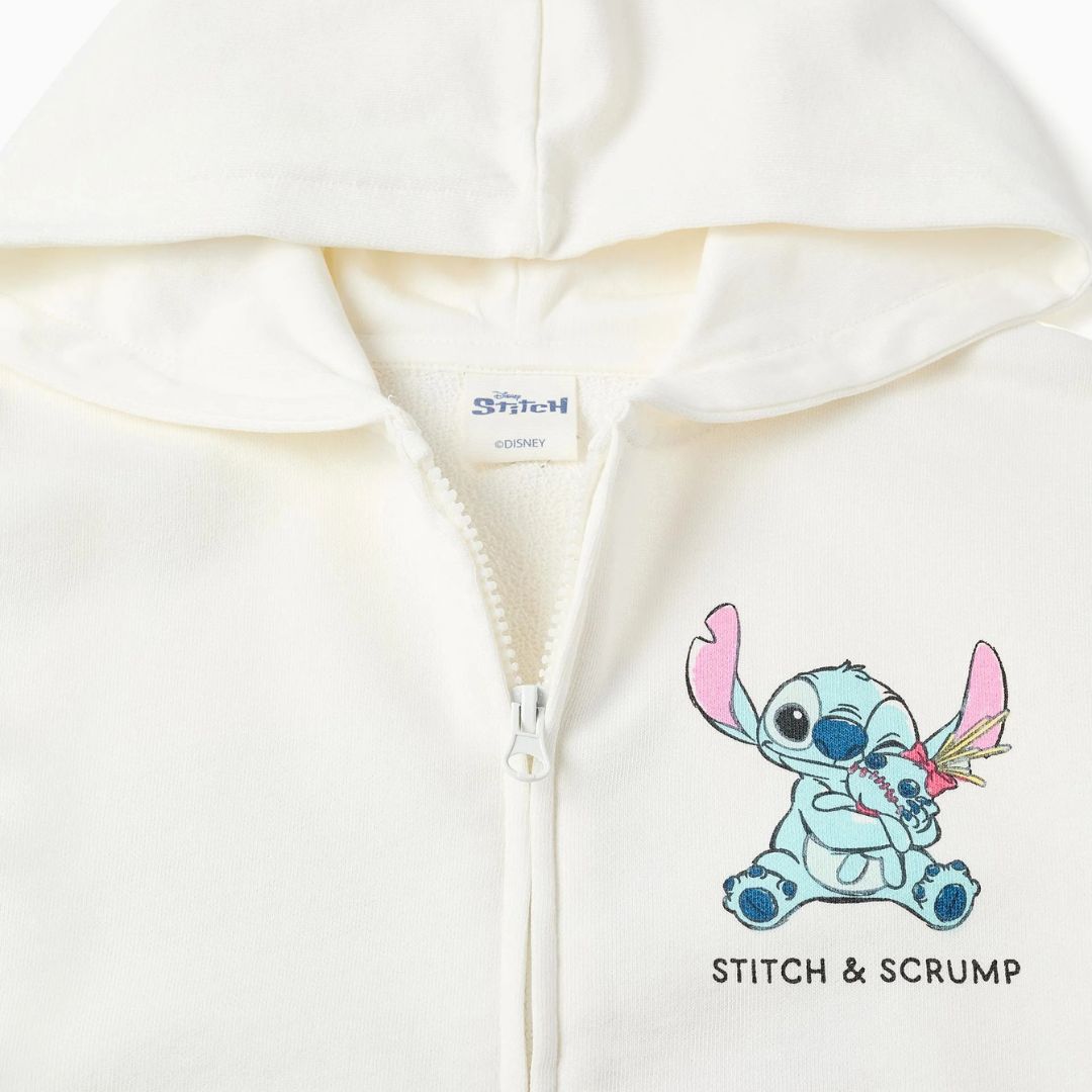 ¡Añade un toque de magia Disney al día a día con esta encantadora sudadera de Stitch! En un blanco impecable y radiante, esta chaqueta con capucha no solo es cómoda, sino que está llena de detalles dulces que la convierten en la prenda favorita de cualquier fan de Lilo & Stitch.