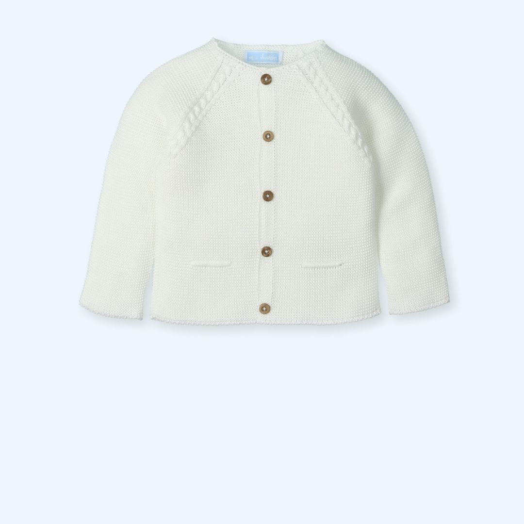 Diseño de Manga Raglán: Las mangas cuentan con un detalle trenzado decorativo que sube desde la sisa hasta el cuello, aportando un toque de elegancia artesanal.