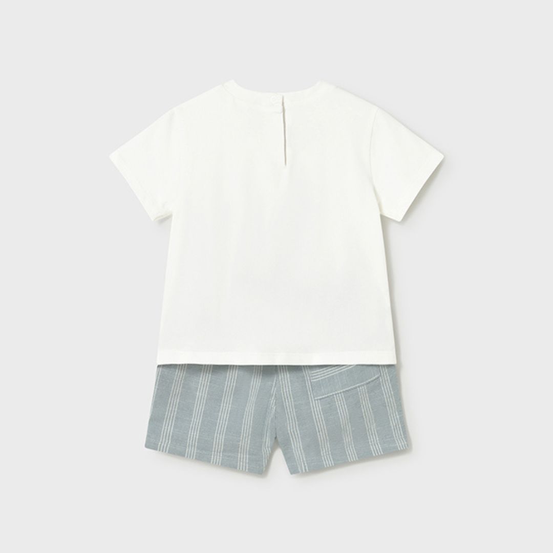 Prepara a tu pequeño para los días de sol con este elegante y cómodo conjunto de dos piezas de Mayoral. Diseñado combinando texturas naturales y un estilo clásico europeo, es la opción perfecta para eventos casuales o paseos veraniegos.