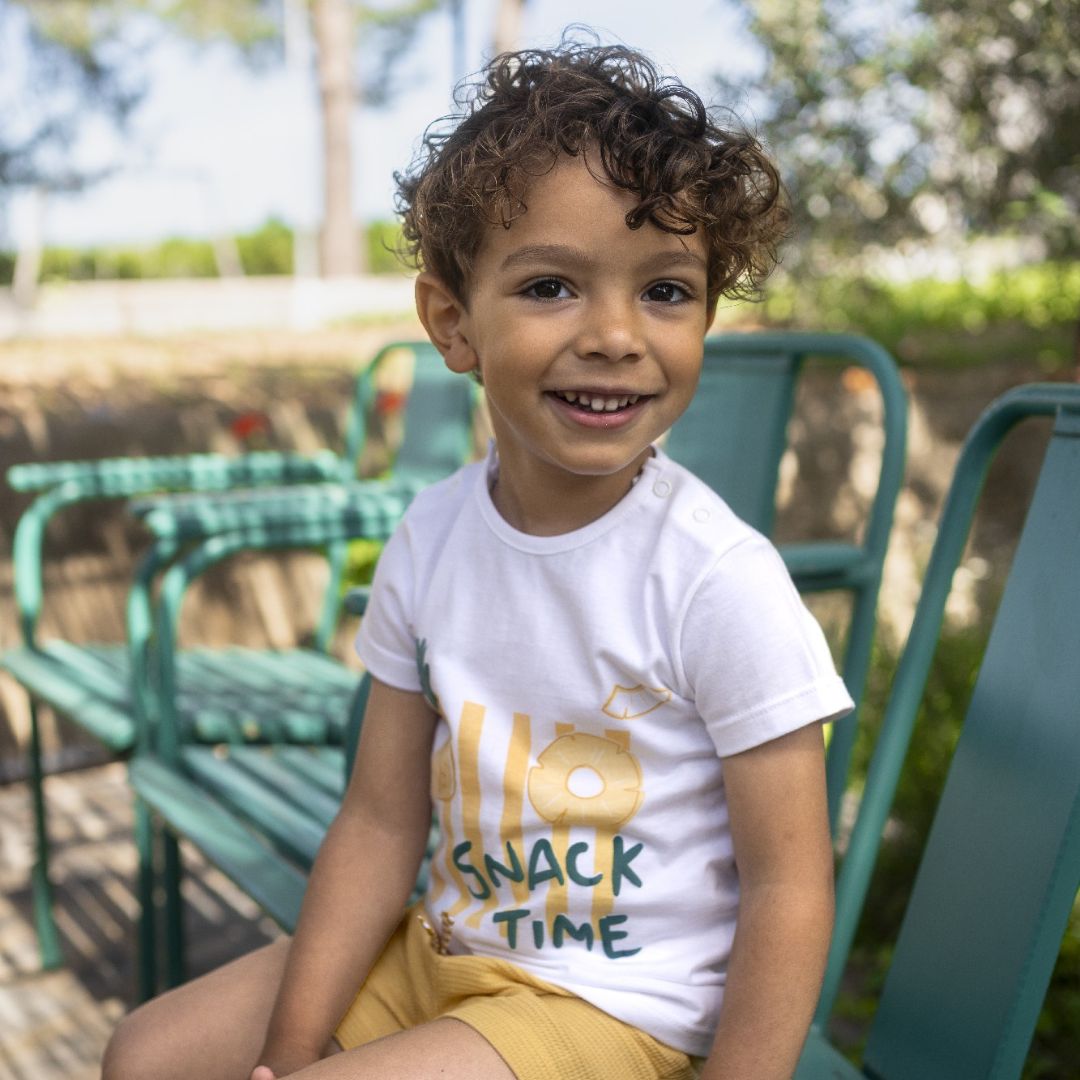 Prepara a tu pequeño para la diversión con el Conjunto Gaya, una propuesta vibrante y desenfadada de Calamaro. Este conjunto de dos piezas destaca por su diseño fresco y juvenil, ideal para los días de juego y meriendas al aire libre durante el verano.