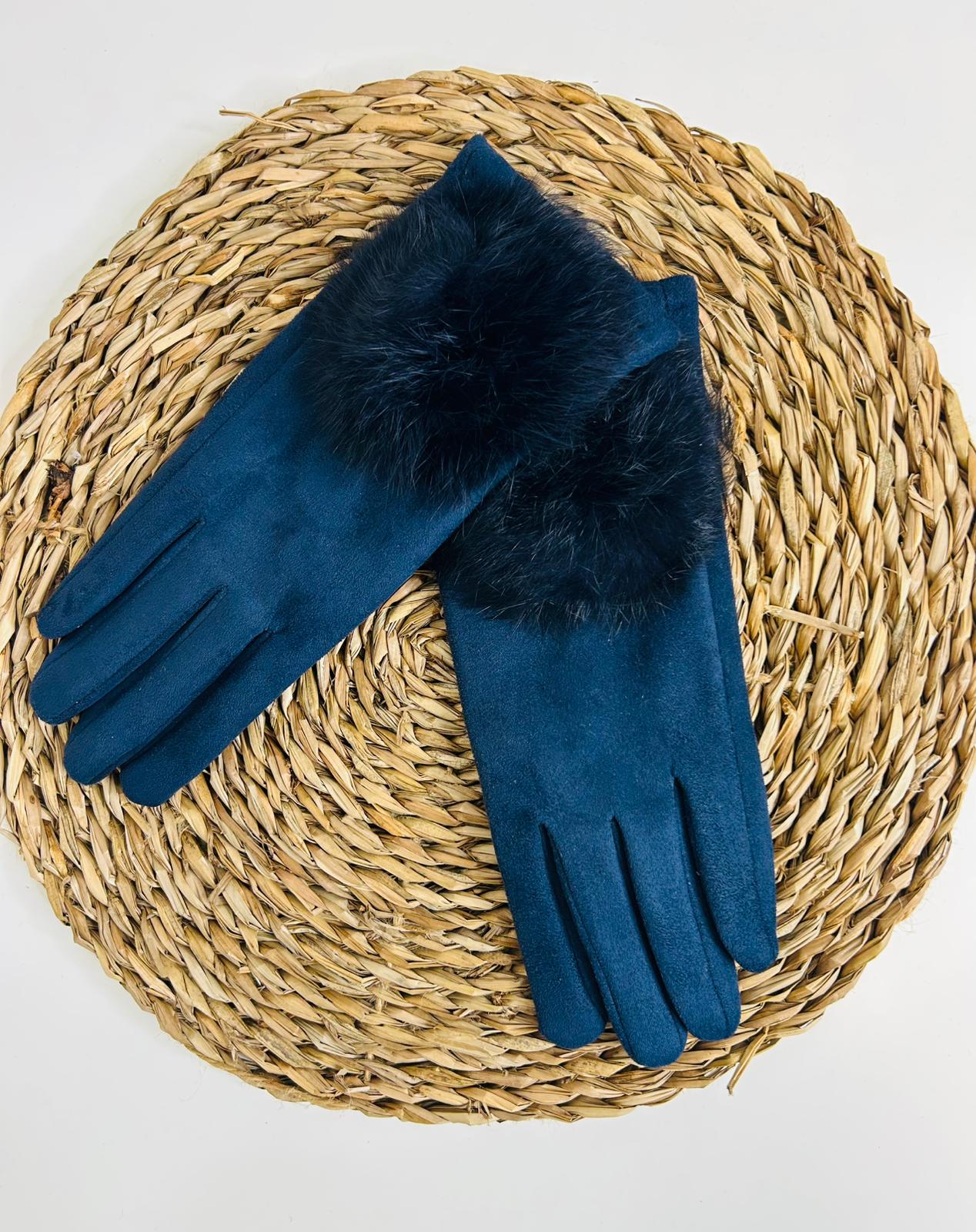 Guantes de señora elegantes y cálidos en color azul marino, diseñados con un encantador pompón que aporta un toque moderno y femenino.