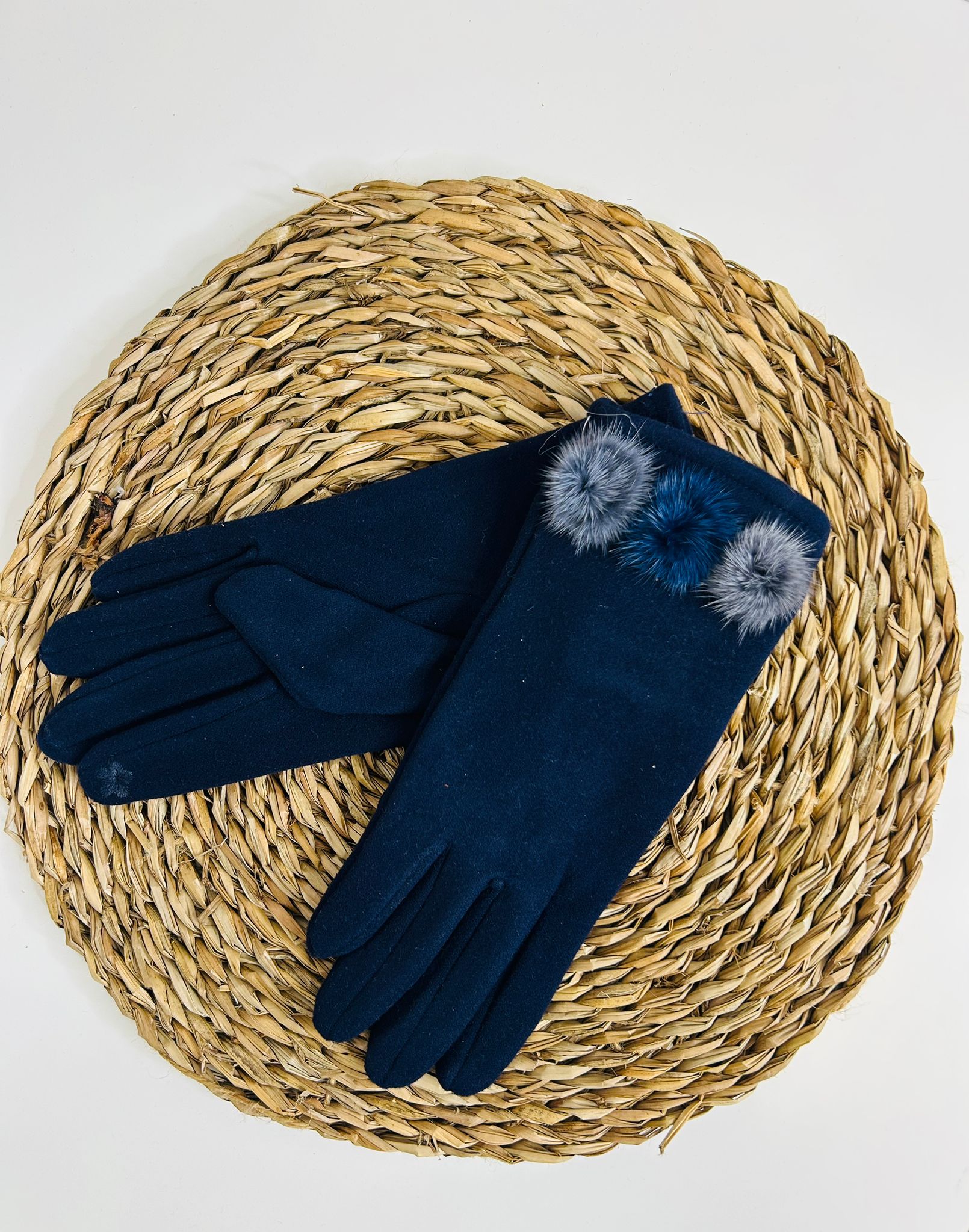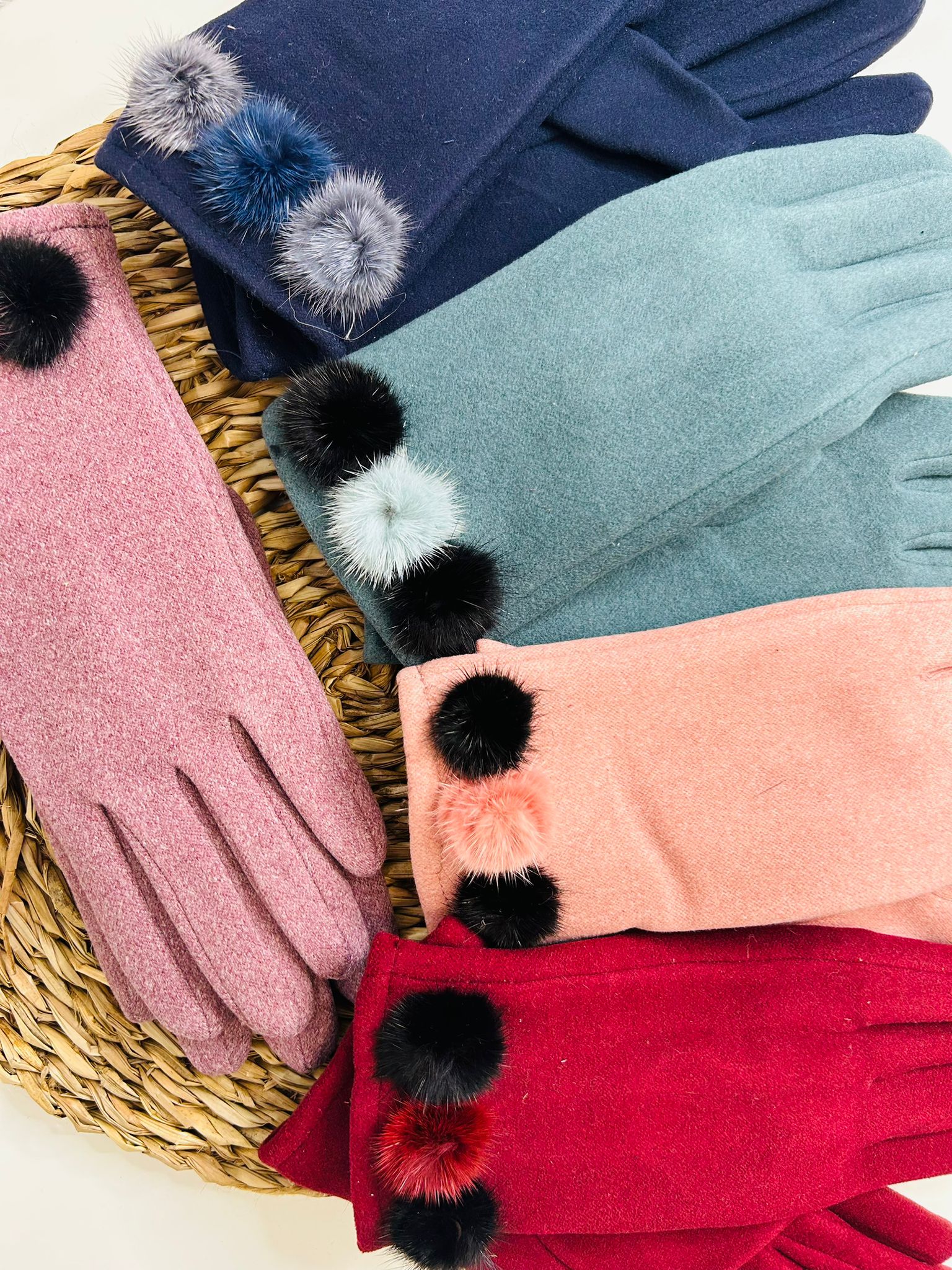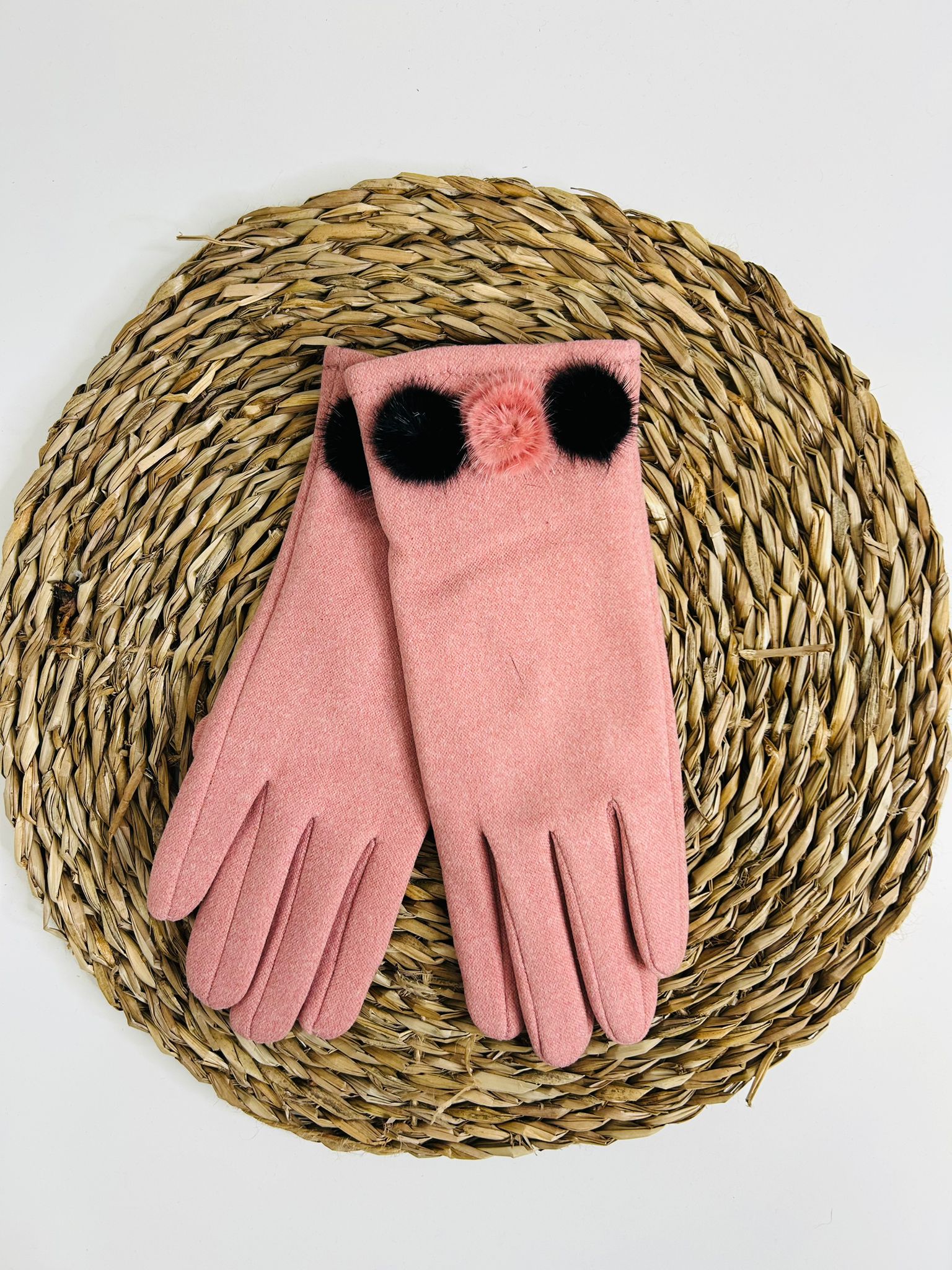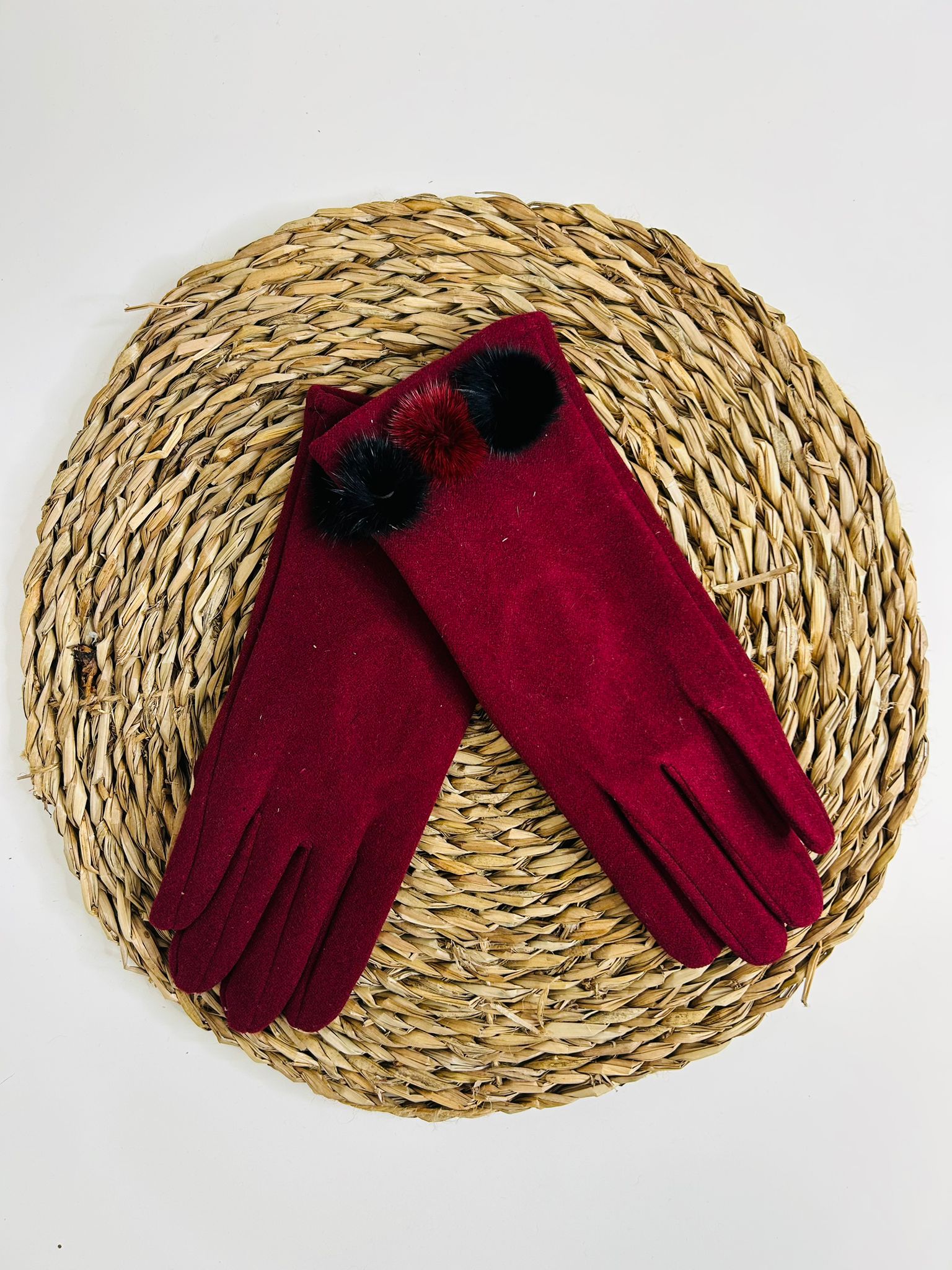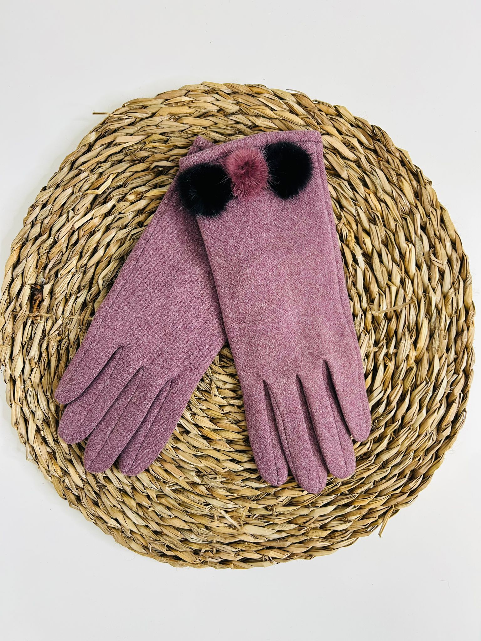 Guantes para mujer con un delicado adorno de pompón que aporta un toque elegante y femenino.