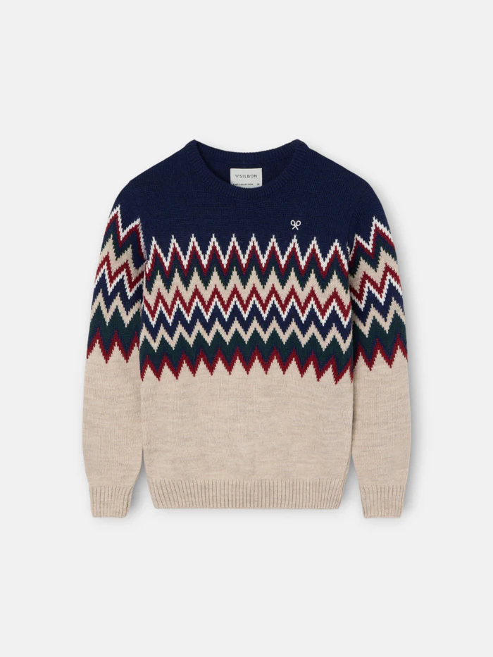 Este jersey jacquard ofrece calidez, suavidad y estilo gracias a su confección en una mezcla de lana de alta calidad.