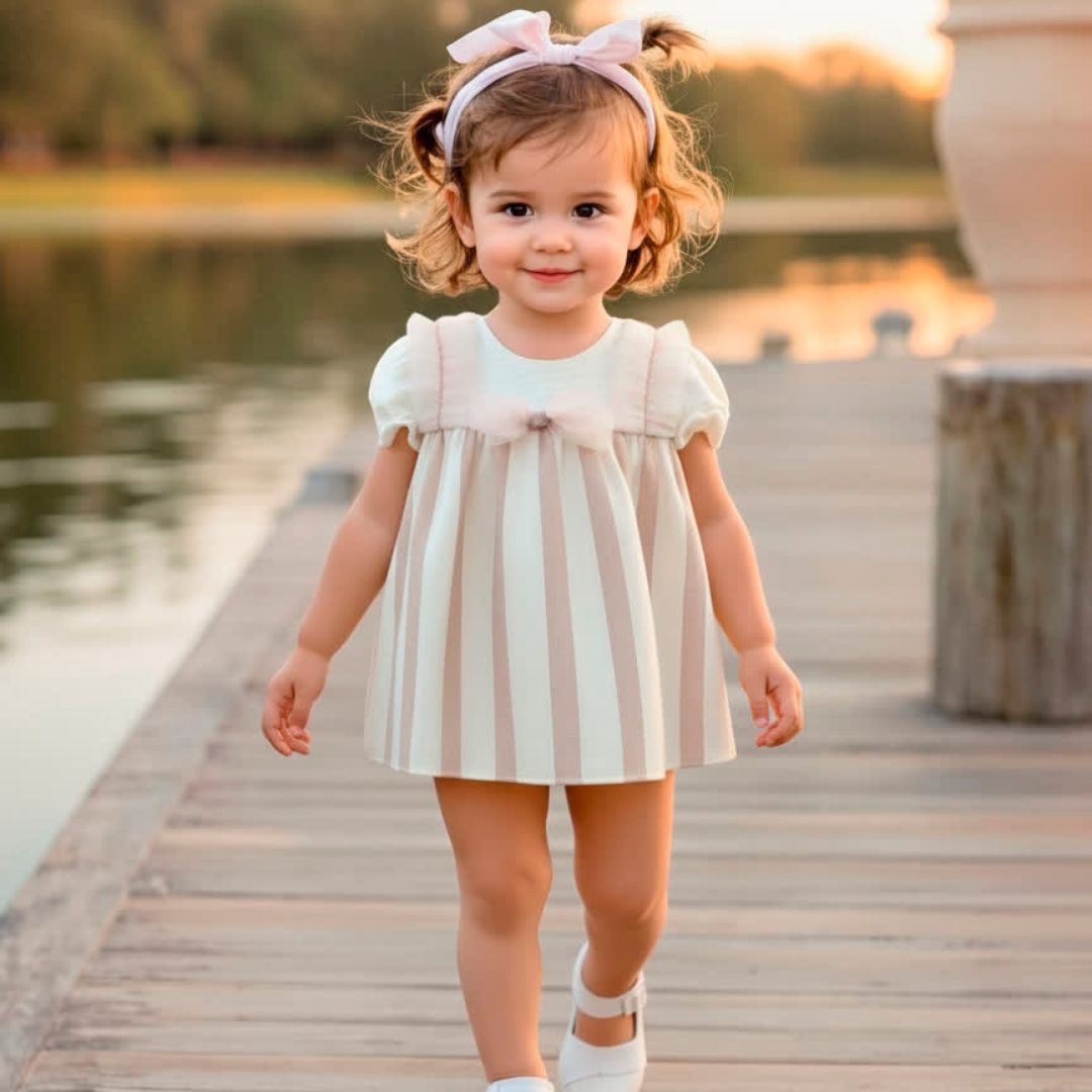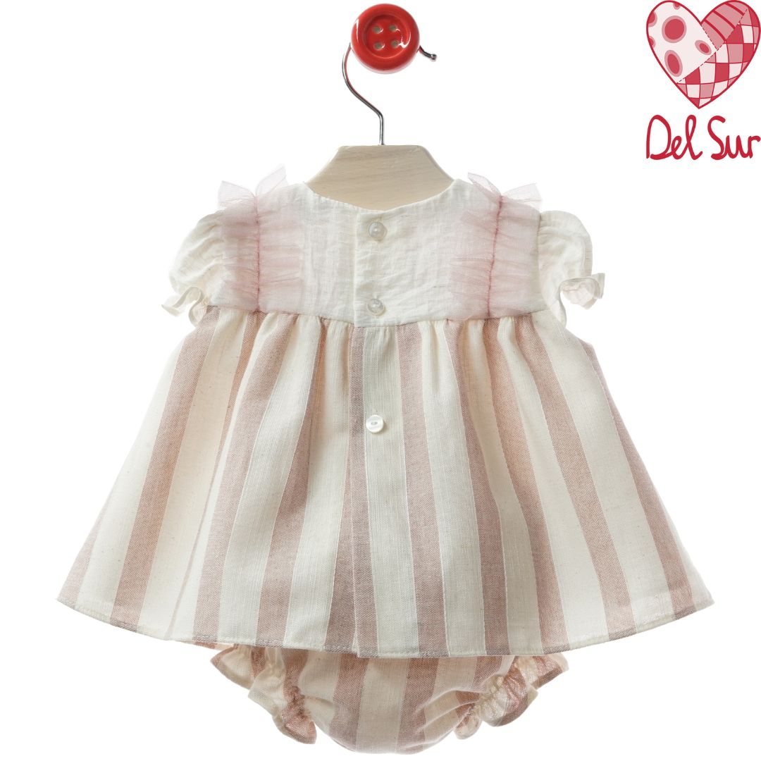 Delicado y atemporal conjunto de la familia Trieste de la marca Del Sur, ideal para los primeros paseos y ocasiones especiales. El jesusito destaca por su diseño clásico y dulce, con un corte cómodo que aporta movimiento y frescura, cuidando cada detalle característico de la marca.
