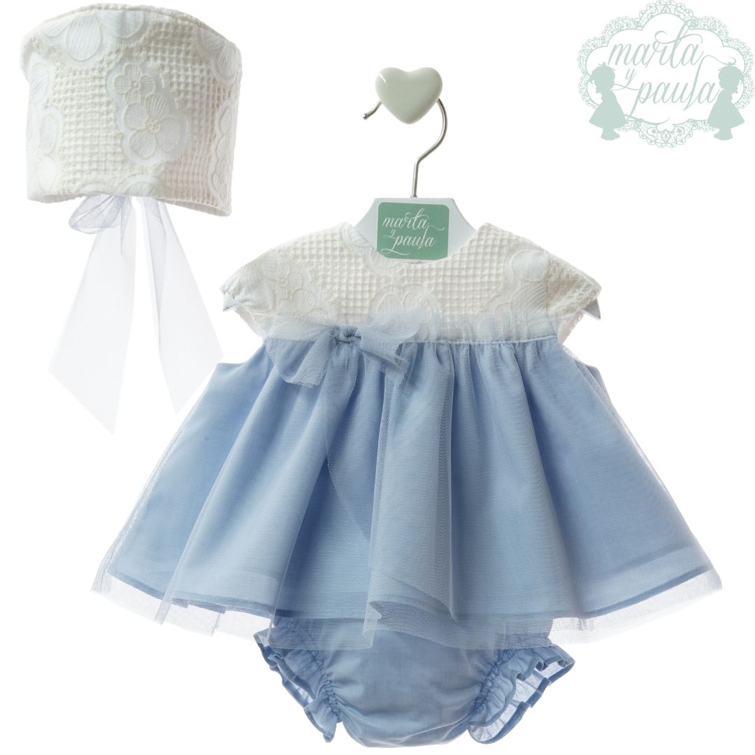 Viste a la más pequeña de la casa con la dulzura y el estilo inconfundible de Marta y Paula. El Jesusito de la Familia Chowa es una pieza artesanal que combina texturas delicadas y un tono azul celeste empolvado, creando un look angelical ideal para bautizos, ceremonias o eventos especiales de temporada.
