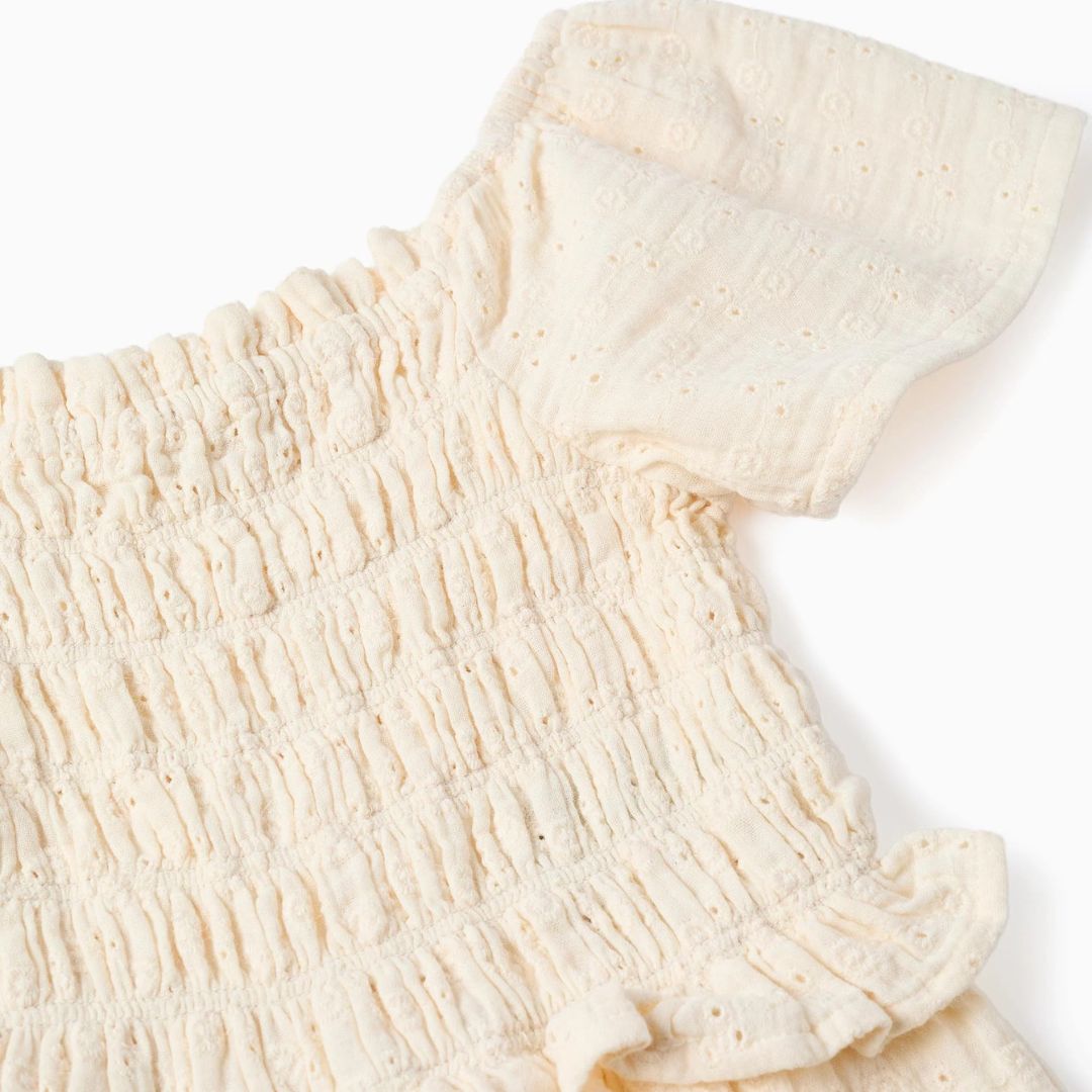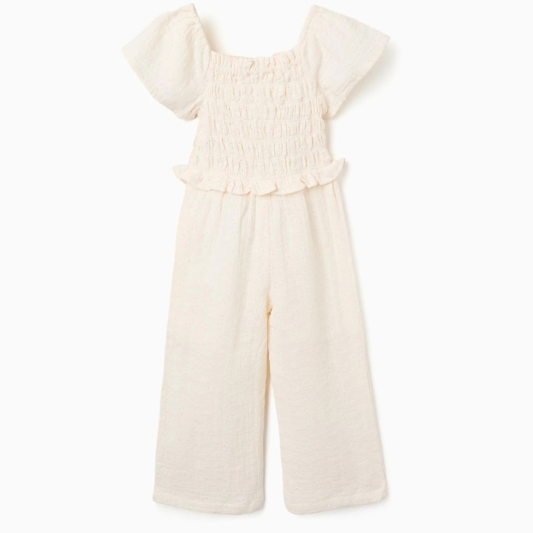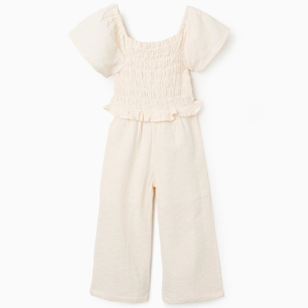Mono Algodón Pierna Ancha Bordado Inglés Beige Claro Zippy