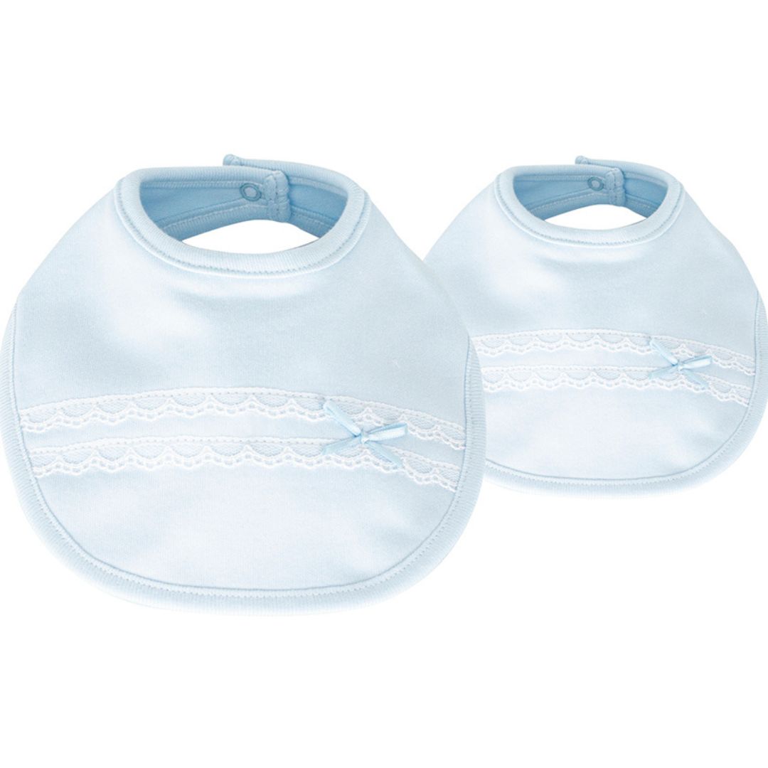 Mantén a tu bebé impecable con la elegancia clásica del pack de dos baberos de la marca Calamaro en color azul celeste. Estos baberos no solo son un accesorio funcional indispensable, sino que aportan un toque de distinción a cualquier conjunto de primera puesta gracias a sus detalles artesanales.