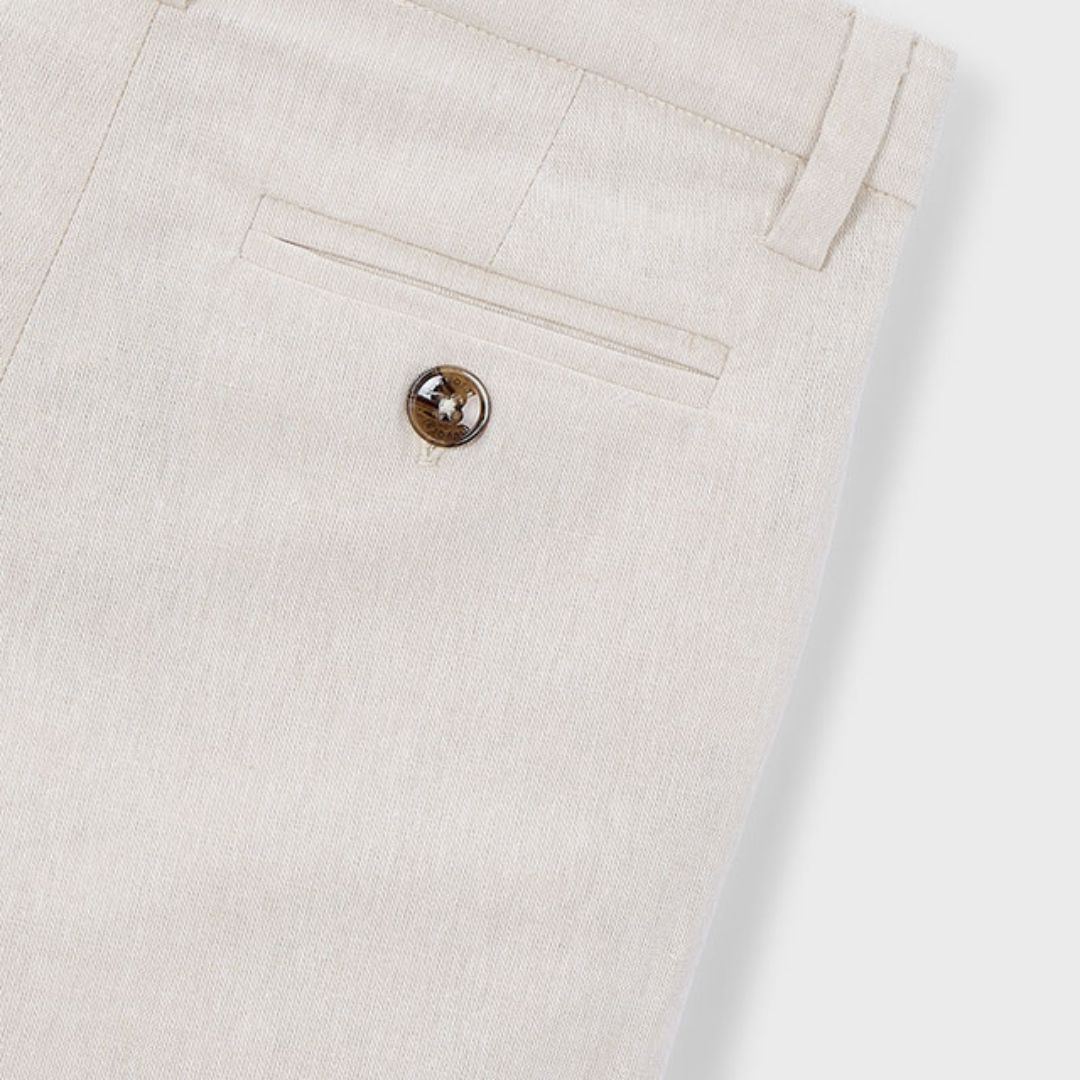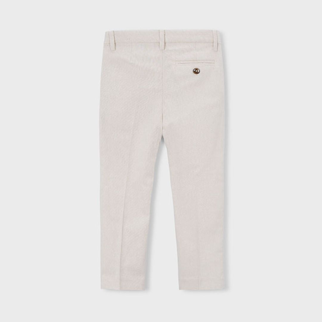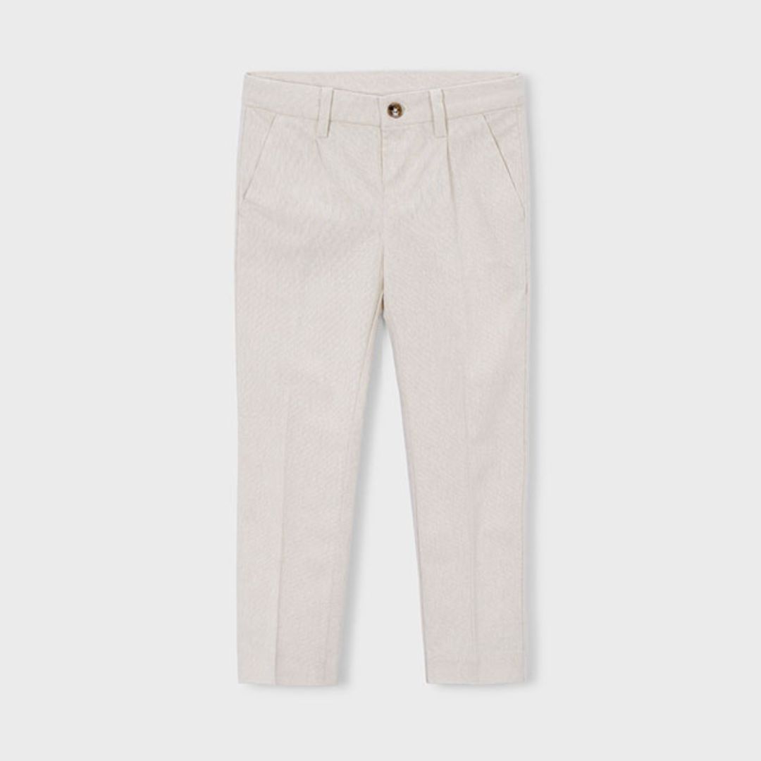 Aporta un toque de distinción y frescura al armario de los más pequeños con este pantalón largo de lino de Mayoral. Diseñado en un versátil color avena mezcla, es la prenda estrella para ceremonias, eventos especiales o looks de verano que requieren un aire más sofisticado sin renunciar a la comodidad.