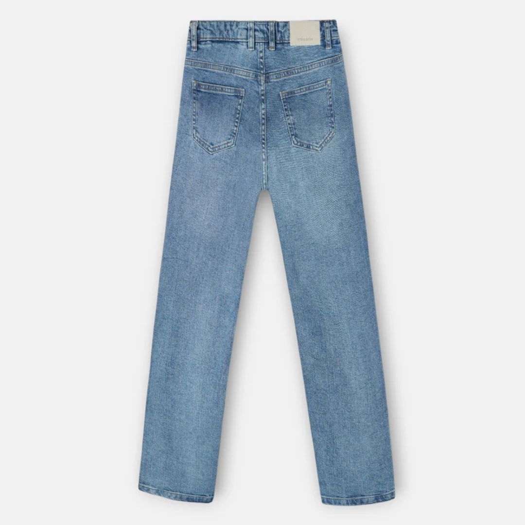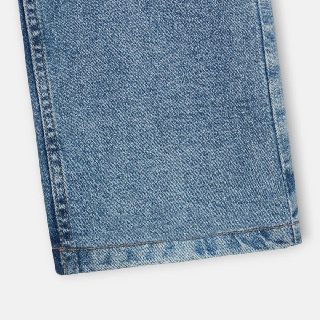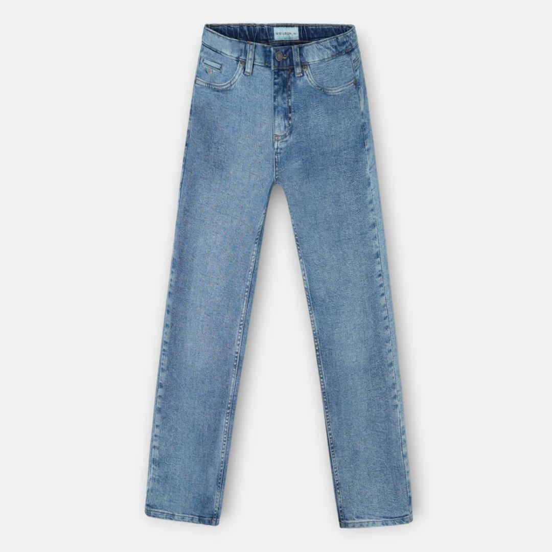 Pantalón sport kids denim confeccionado en mezcla de algodón. Presenta cierre con botón personalizado y cremallera, trabillas en cintura y bolsillos delanteros y traseros. Cuenta con bordado de raquetas en bolsillo y etiqueta personalizada trasera.