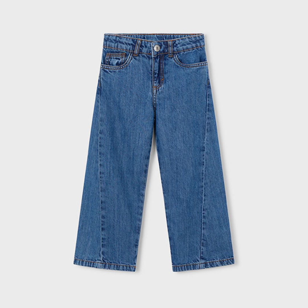 Actualiza el estilo diario de tu pequeña con este pantalón vaquero fluido de Mayoral. Una prenda que reinventa el denim clásico con un corte moderno y una caída ligera, ideal para las niñas que buscan libertad de movimiento sin renunciar a las últimas tendencias de moda.