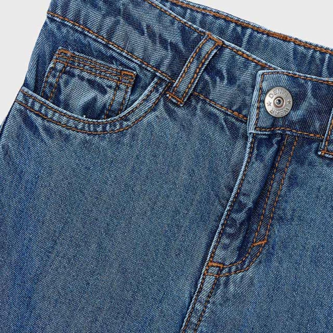 Denim Ligero: Confeccionado en un tejido vaquero suave y de tacto ligero, perfecto para asegurar la comodidad durante todo el día.