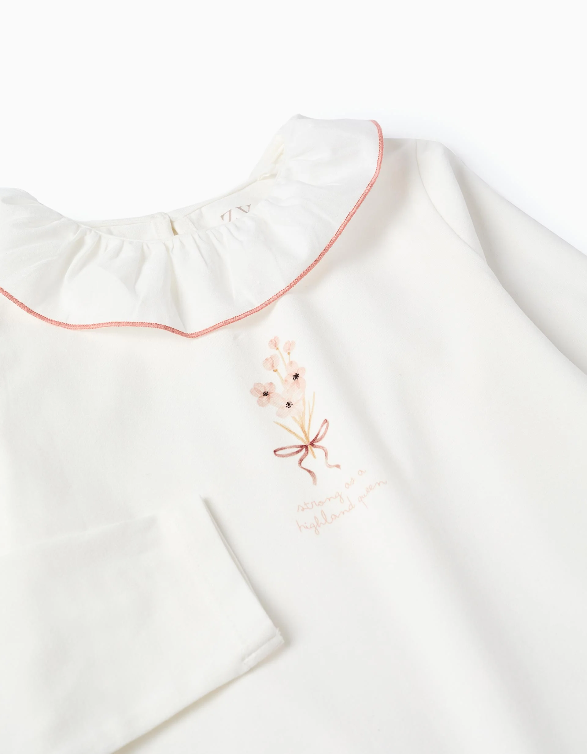 Confeccionado en tejido blanco con motivo floral en tonos rosa y verde, aporta un toque romántico y alegre a cualquier conjunto.