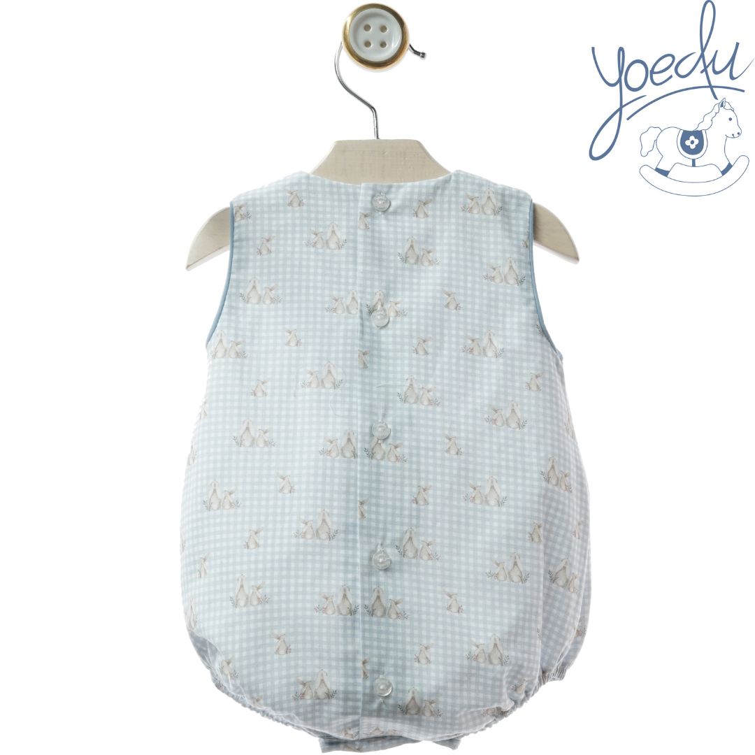 Estampado Clásico: Confeccionado con un suave cuadro vichy en azul celeste adornado con sutiles motivos infantiles estampados que aportan un aire dulce y tradicional.