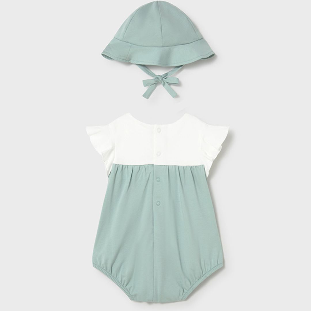 Viste a tu bebé con la elegancia y frescura de este precioso pelele de Mayoral en tono aqua. Un conjunto de dos piezas que destaca por su delicadeza y comodidad, diseñado para proteger y dar estilo a las más pequeñas en los días más cálidos.
