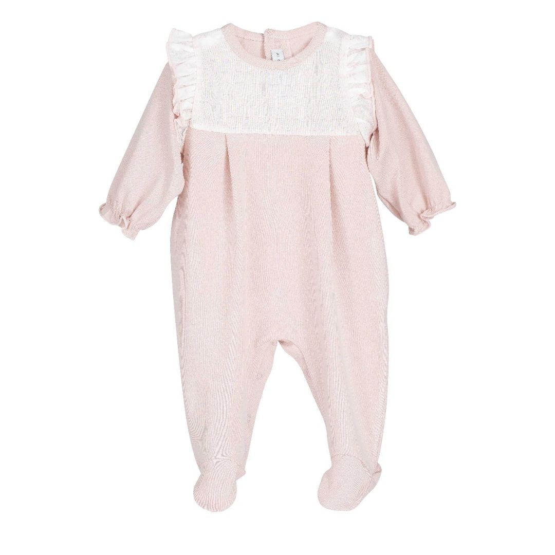 El Pelele Goa de Calamaro es la pieza perfecta para vestir a tu bebé con la elegancia atemporal del punto español. Diseñado pensando en la delicadeza de los primeros meses, este pijama/pelele combina un tono rosa empolvado con detalles artesanales que lo hacen único.