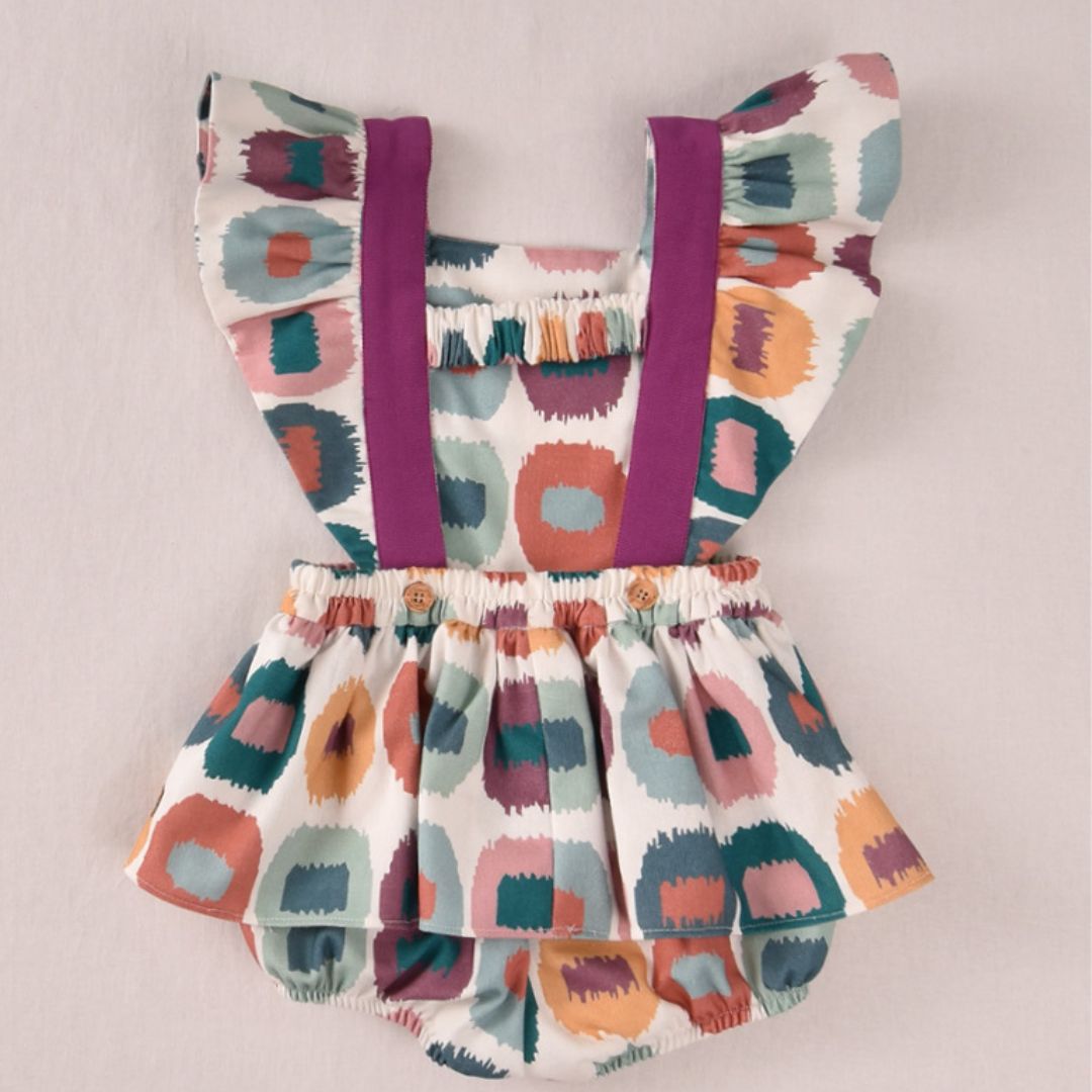 Añade una explosión de color y alegría al armario de tu pequeña con este espectacular peto corto de la Colección Casual de José Varón. Una prenda diseñada para destacar, que combina un estampado artístico contemporáneo con un corte clásico y femenino, ideal para eventos veraniegos o tardes de paseo bajo el sol.
