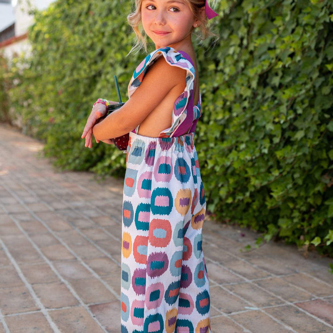 Haz que tu pequeña brille con una prenda llena de arte y personalidad. El Peto Largo de la Colección Casual de José Varón es una pieza vibrante y moderna que redefine el concepto de moda infantil con su espectacular estampado abstracto y su silueta sofisticada.