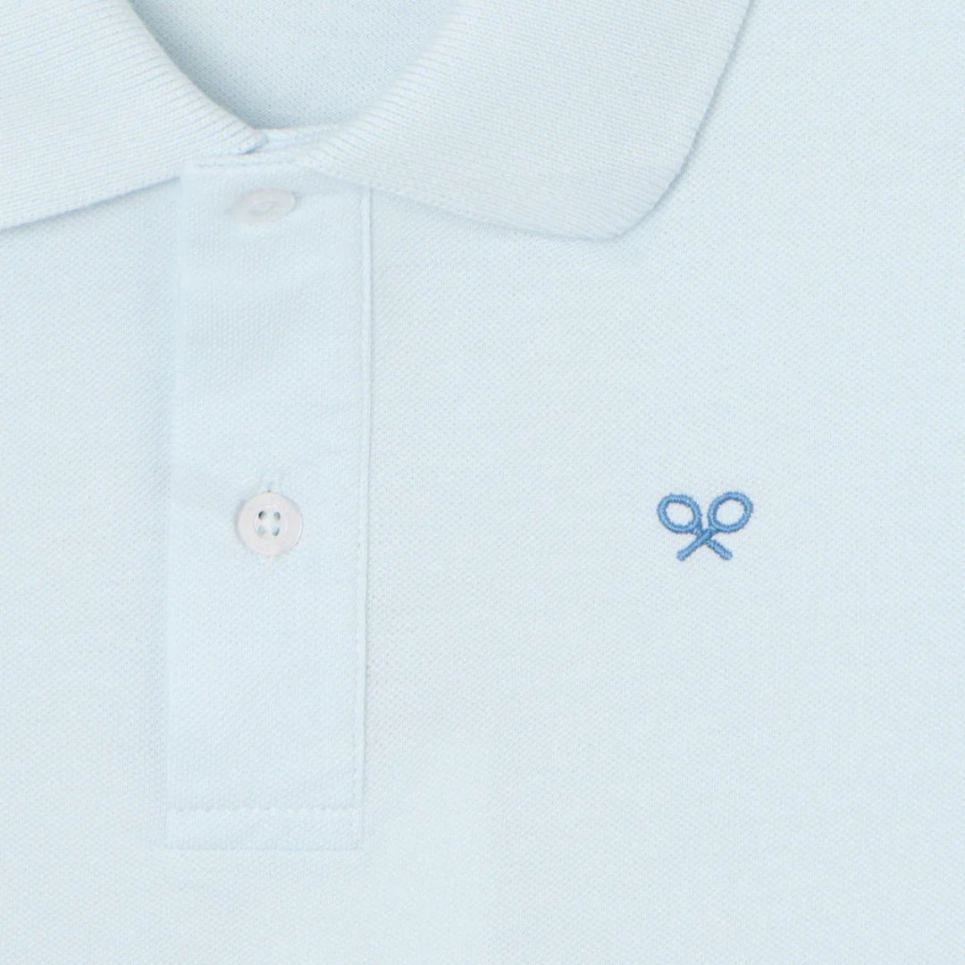 Acabado Frontal: Un estilo limpio y minimalista con el logotipo de las raquetas bordado en pequeño sobre el pecho en un tono azul a juego.