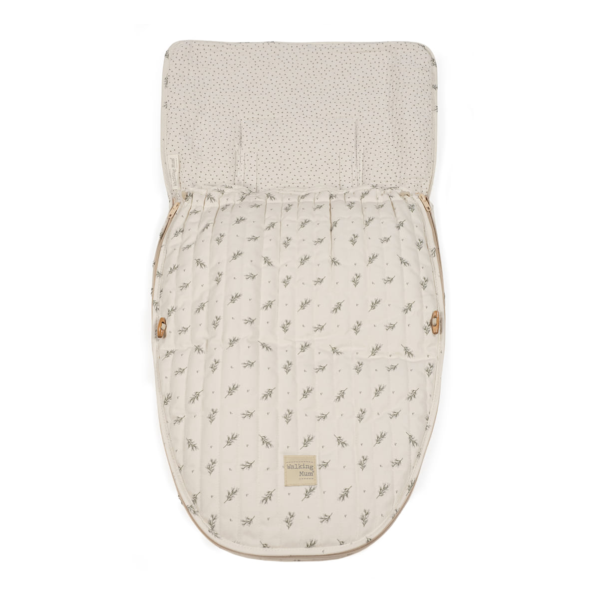 La funda con saco Mimosa Verde de Walking Mum es el accesorio ideal para mantener a tu bebé cómodo y abrigado durante los meses de primavera y otoño.