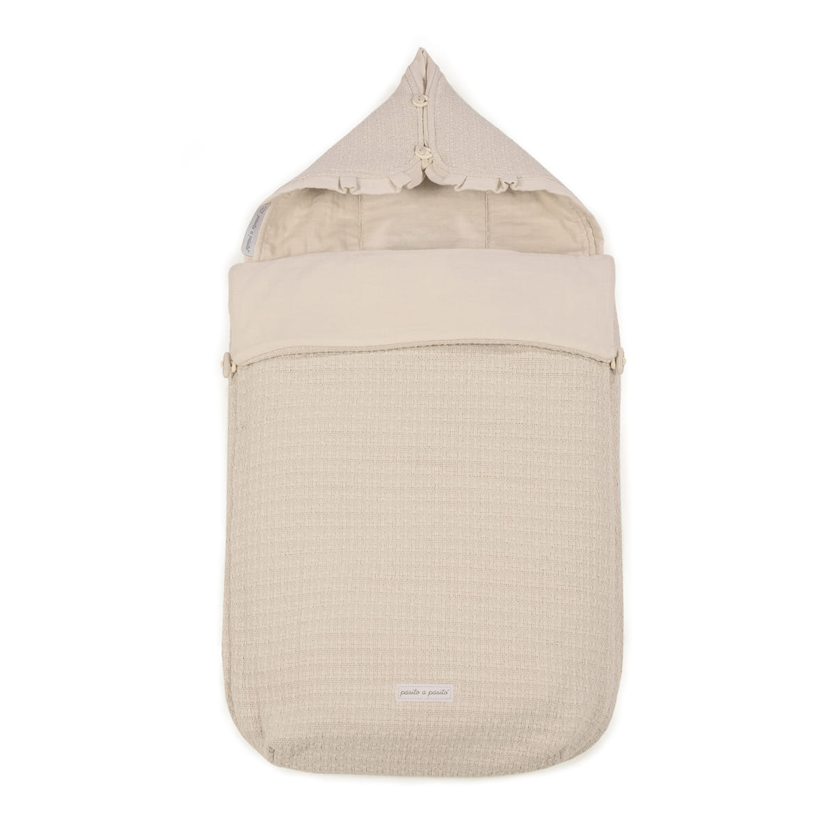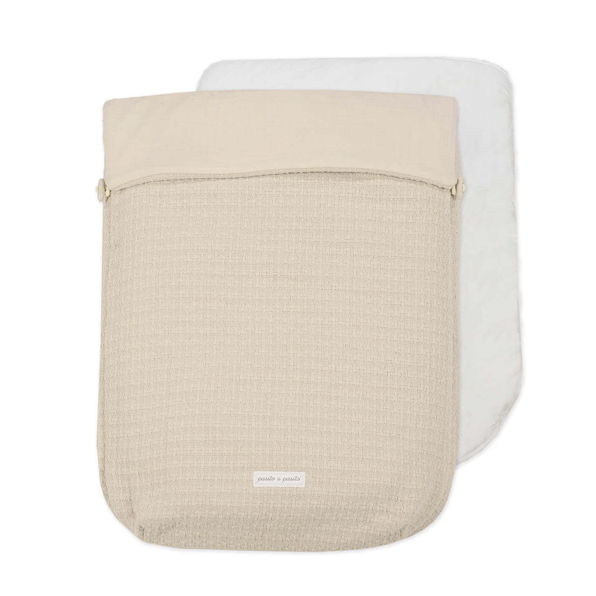 El saco cuco Icon Cream de Pasito a Pasito es un saco de dormir para bebé elaborado en tejido leno y bambula muy suave. Es un accesorio básico 3 en 1 que sirve para utilizarlo en casa para cubrir el porta bebé Grupo 0 y también le va muy bien como cubre capazo. Trasera con material anti-sudoración que evita la sudoración excesiva del bebe y protege la silla haciendo el paseo más confortable. Relleno de fibra hueca extraíble.