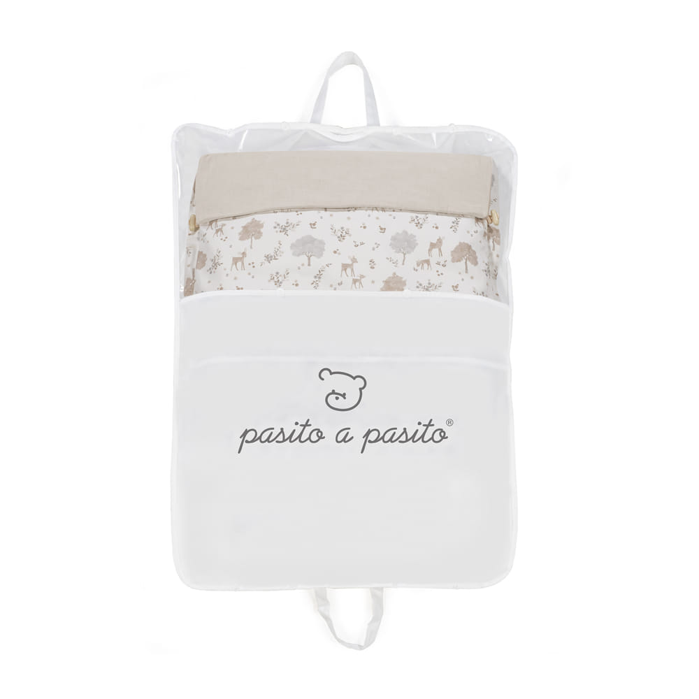 El saco cuco Nara de Pasito a Pasito es un saco de dormir para bebé elaborado en tejido de algodón y bambula muy suave en el interior. Es un accesorio básico 3 en 1 que sirve para utilizarlo en casa para cubrir el portabebé Grupo 0 y también le va muy bien como cubre capazo. Trasera con material anti-sudoración que evita la sudoración excesiva del bebe y protege la silla haciendo el paseo más confortable. Relleno de fibra hueca extraíble. Es totalmente universal porque dispone de varias aperturas (ojales) y ajustes necesarios para adaptarla a la mayoría de los cucos, portabebés y sillas de paseo en su interior. Un complemento muy útil y versátil en las cosas de tu bebé. Una vez desenfundada la base se convierte en colchoneta ligera para la silla de paseo. Prepara con mucho amor el nido rosa de tu niña/niño y decora sus sueños con un toque diferente en donde quiera que lo recuestes. Una manta acolchada y esponjosa que permite disfrutar de un descanso más agradable con la forma acogedora que tiene de nido. Es un diseño bonito, simple y cómodo que crea un nido para tu bebé manteniéndolo arropado y protegido en días de brisa. El saco se adapta sin problemas a cualquier coche para darle la comodidad que necesita. Acabados de calidad.