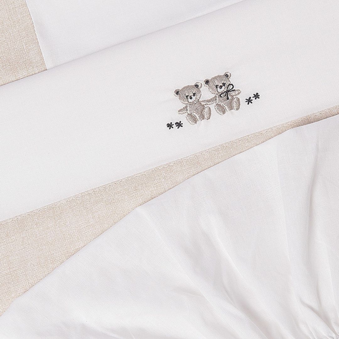 Diseño Elegante: Destaca por un tierno bordado de dos ositos en el centro de la encimera, aportando un toque dulce y artesanal al conjunto.
