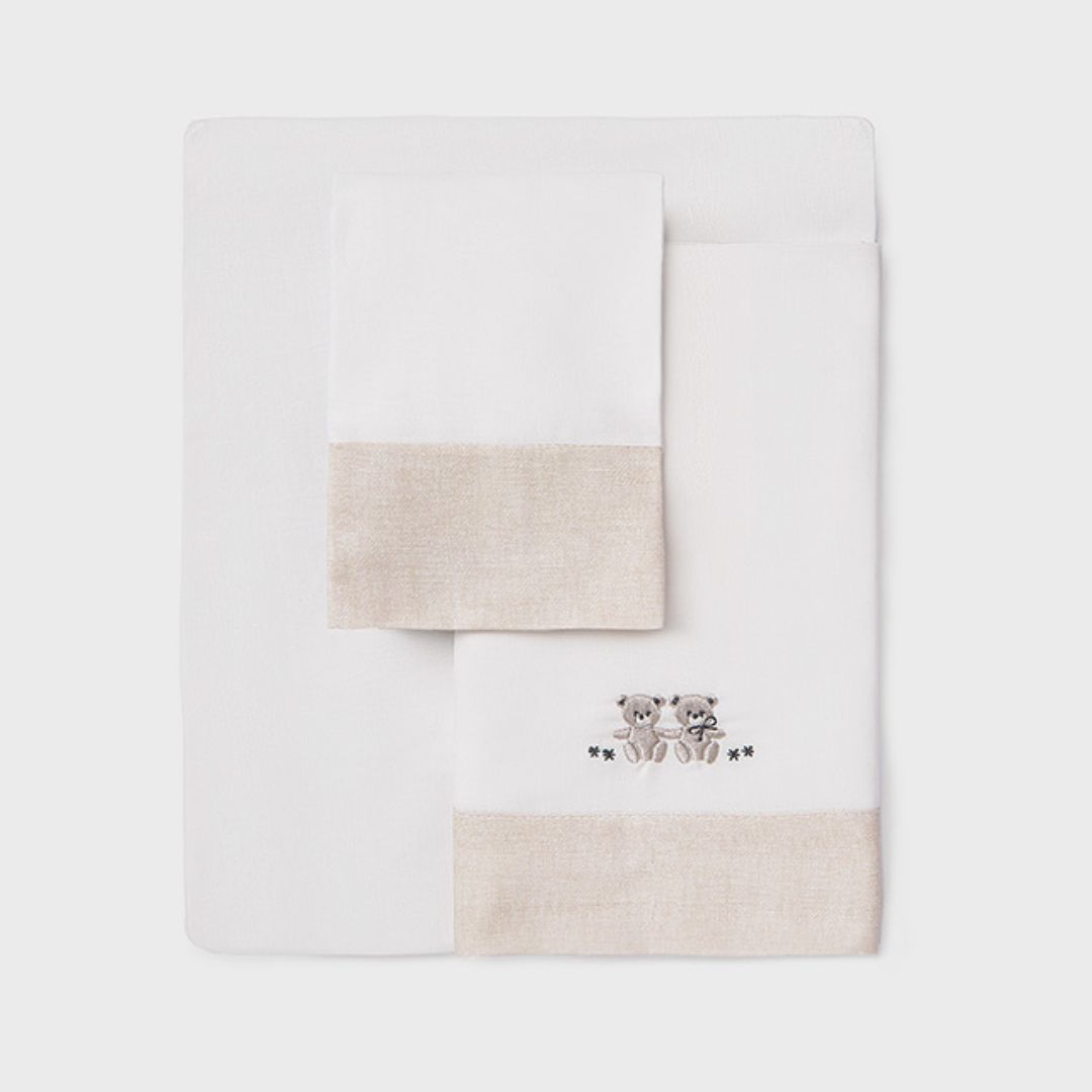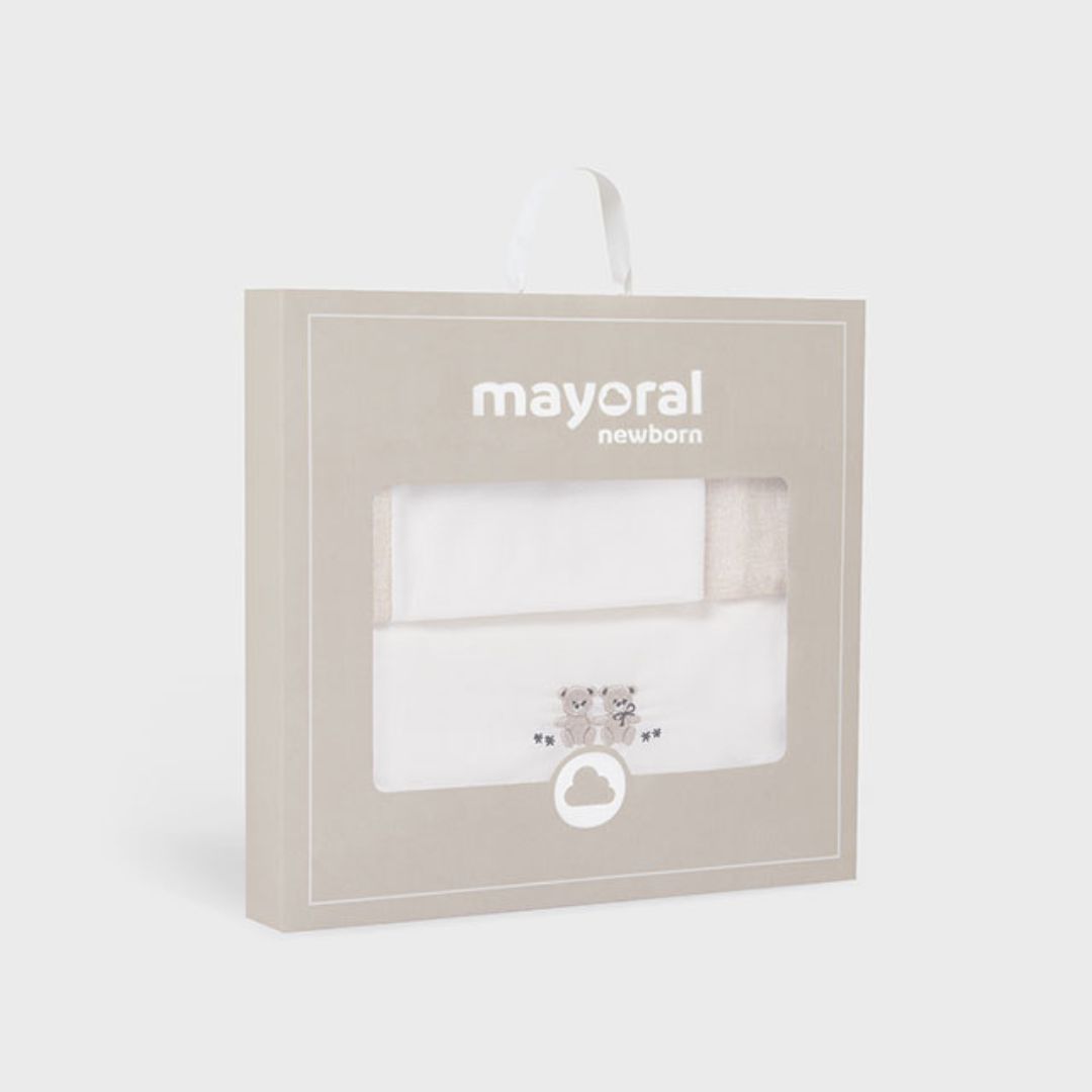 Viste la cuna de tu bebé con la delicadeza y el confort que ofrece Mayoral. Este set de tres piezas ha sido diseñado pensando en la suavidad que requiere la piel del recién nacido, combinando un estilo clásico en tonos neutros que encaja a la perfección en cualquier habitación infantil.