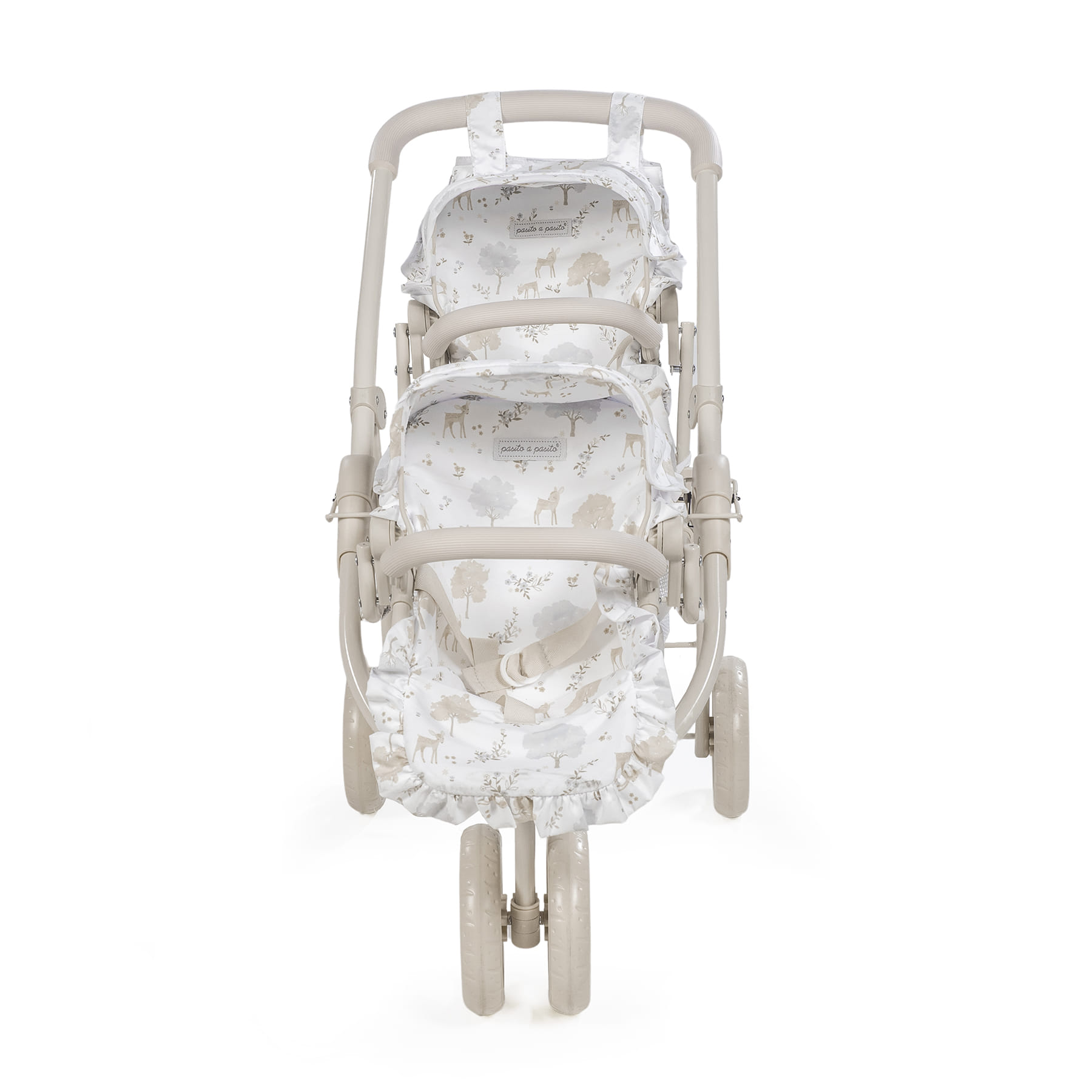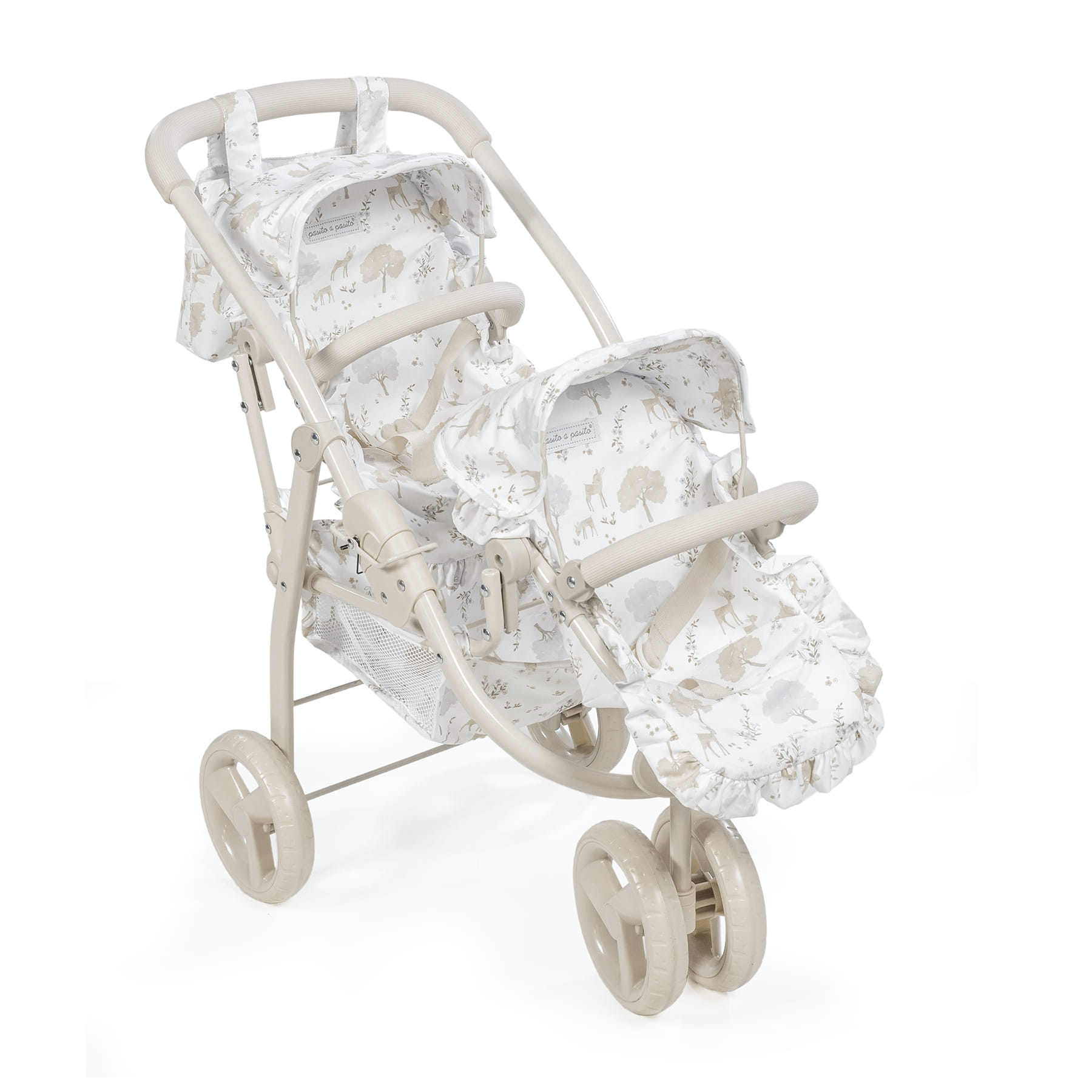 La silla gemelar Nala de Pasito a Pasito es el complemento perfecto para que los peques disfruten paseando a sus muñecas. Con un diseño delicado en tonos beige y blanco y un estampado exclusivo de la colección Nala, este carrito doble destaca por su estilo elegante y su comodidad de uso.