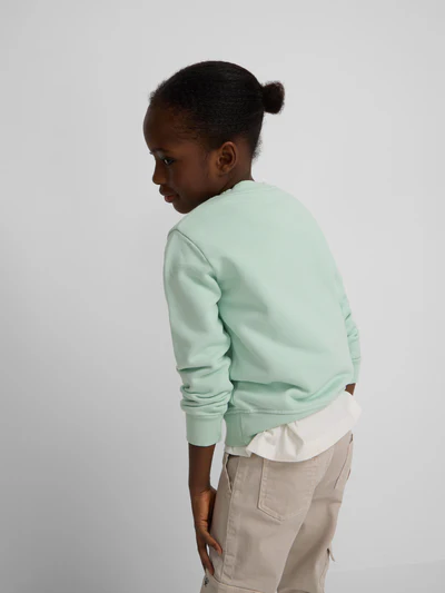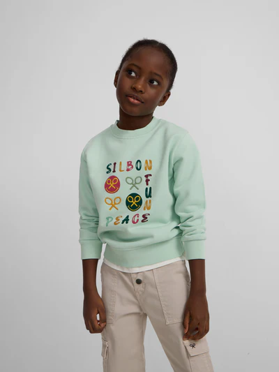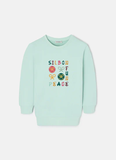 Sudadera girl fun and peace verde confeccionada en 100% algodón. Presenta detalle de print multicolor en la parte delantera. Cuenta con cuello redondo y manga recta con puño elástico.