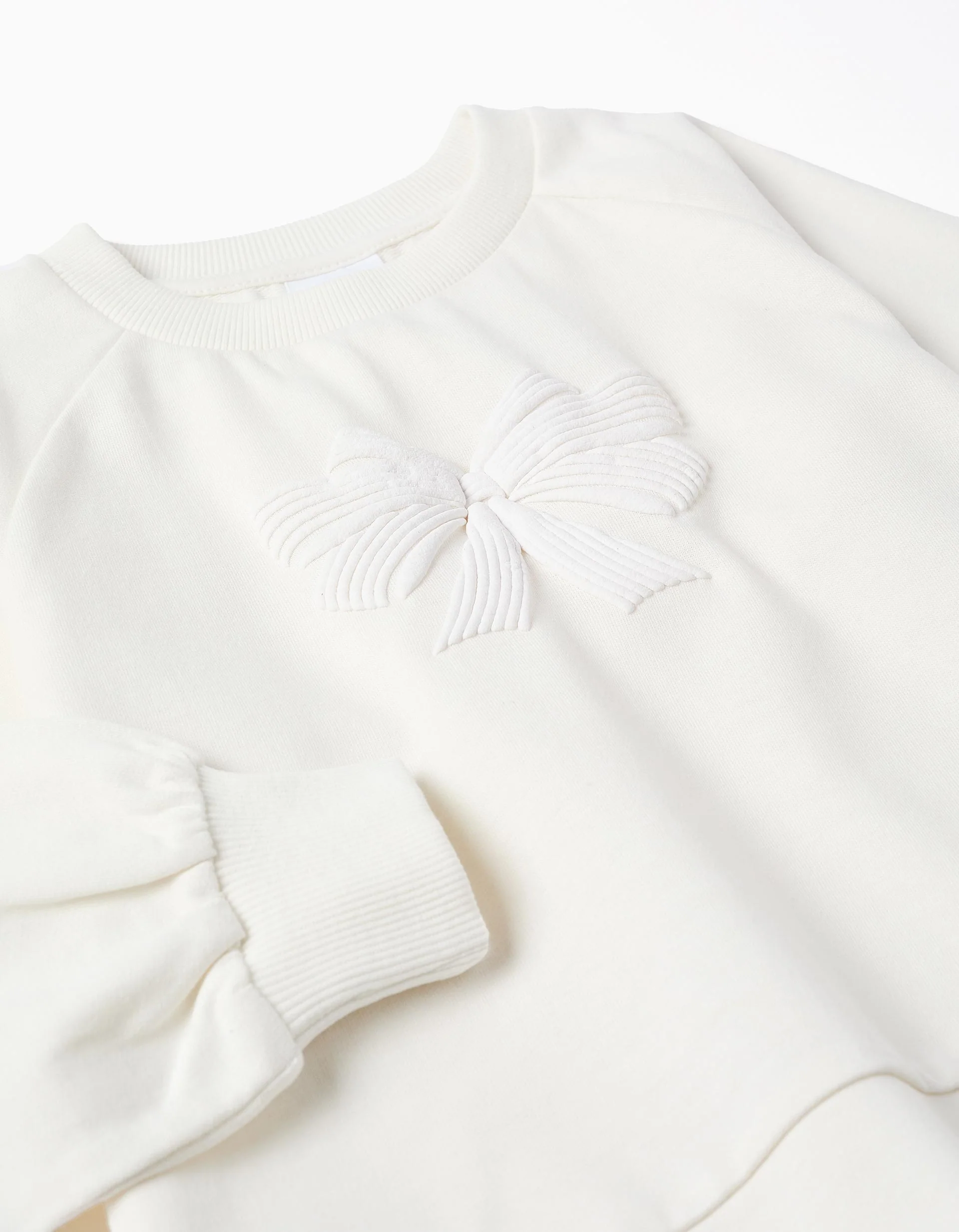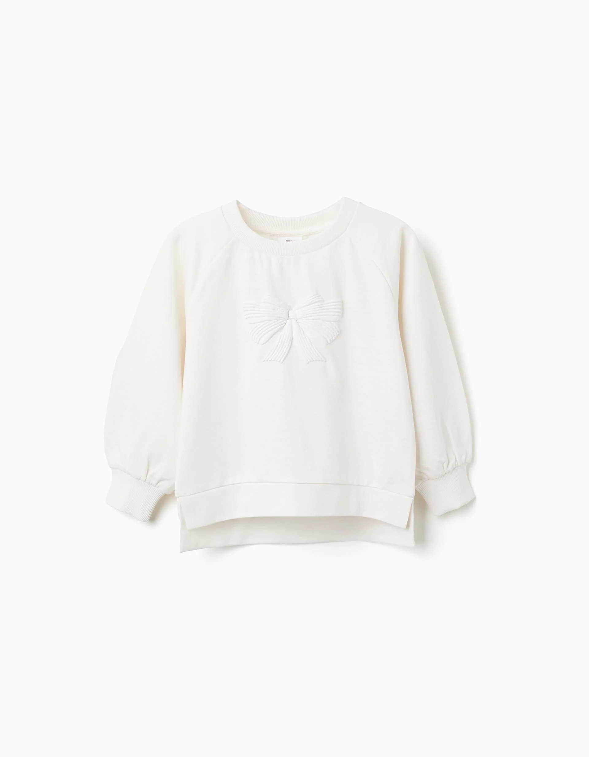 Sudadera blanca, en mezcla de algodón, para un tacto suave y cómodo. Estampado de lazo en relieve. Mangas ranglán. Extremos acanalados, para un ajuste perfecto. Aberturas laterales en la base. Bajo asimétrico con espalda ligeramente más larga. ¡Una sudadera cómoda y ideal para salidas en familia!