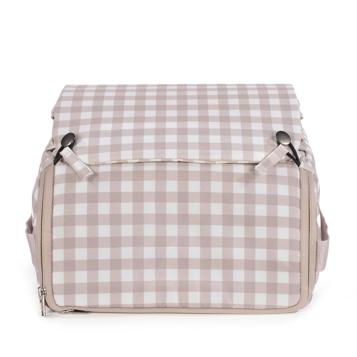 Confeccionada con materiales resistentes y de alta calidad, destaca por su diseño elegante en en cuadros beige, característico de la colección Caetana, que combina estilo y funcionalidad. Incluye arneses ajustables para asegurar una correcta sujeción del bebé y correas regulables para fijarla firmemente a la silla.
