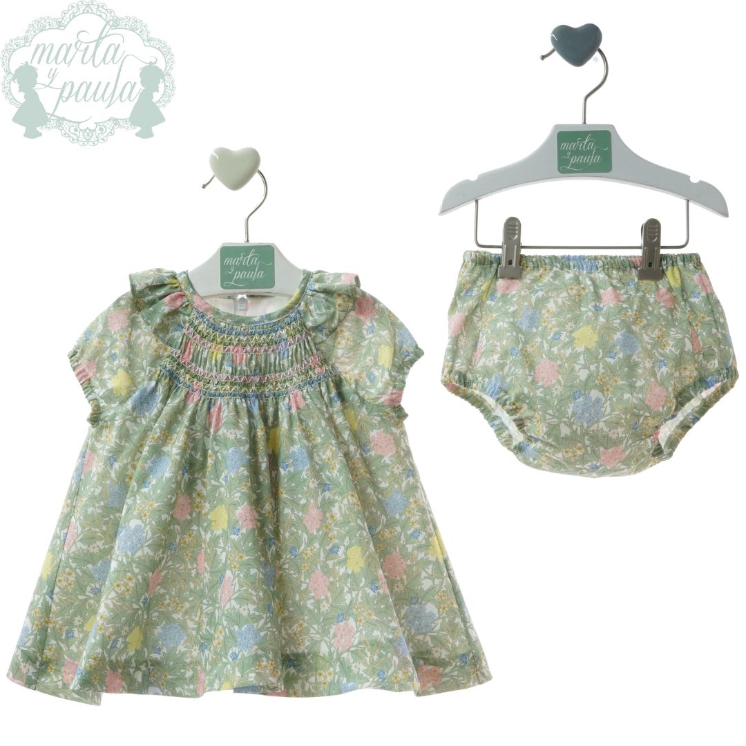 Braguita Coordinada: Incluye una braguita (cubrepañal) con el mismo estampado floral, completando un look armonioso y cuidado hasta el último detalle.
