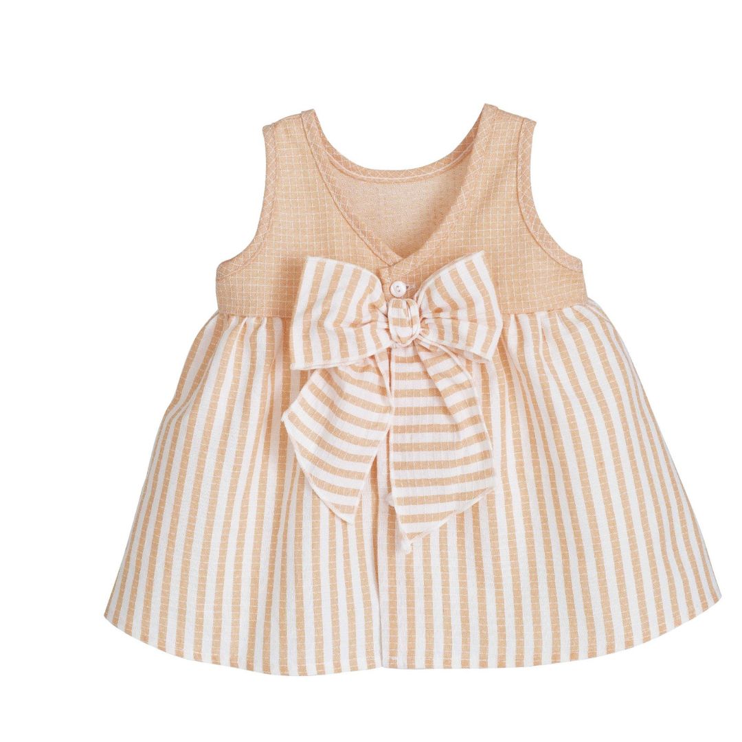 Confeccionado por la prestigiosa marca española Calamaro, este vestido está fabricado en tejidos ligeros y transpirables, pensados para cuidar la piel delicada del bebé y garantizar frescura durante todo el día.